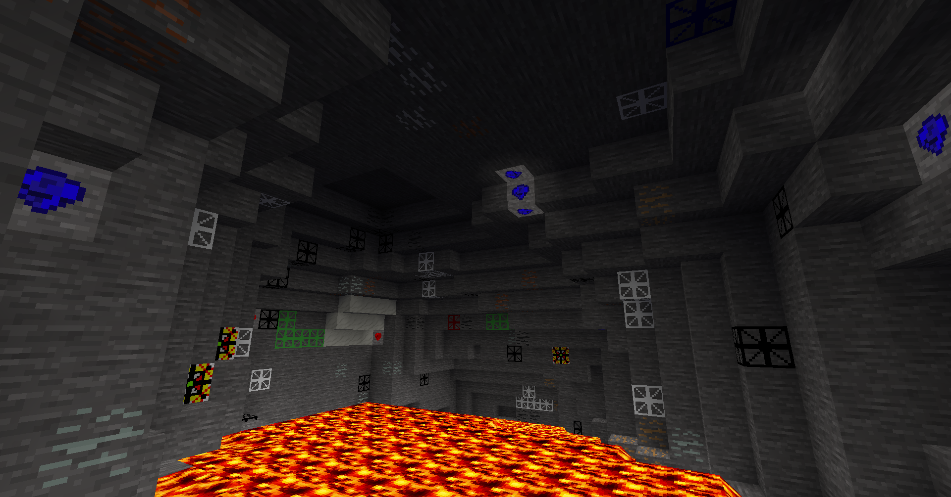 Combat barely functions. Mobs appear to be identical reskins of the same model, are incapable of moving slightly to the side to get around an obstacle, and cease to do damage if the player puts on any piece of armor. A pair of wooden clogs is all it takes to foil these beasts, who will queue up ~2m from the player and respectfully wait to be slain. That is, unless they come in contact with any water which will melt them in seconds. Just to be sure that this wasn't just an early-game thing, I turned on noclip and flew to Y -1,750. The mobs there were no different.