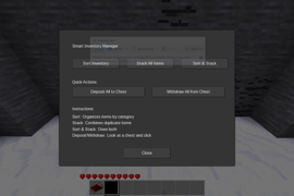 SimonSimplify your inventory management with one command! Auto-sort items by category, stack duplicates, and quickly transfer items to/from chests with an easy-to-use GUI.