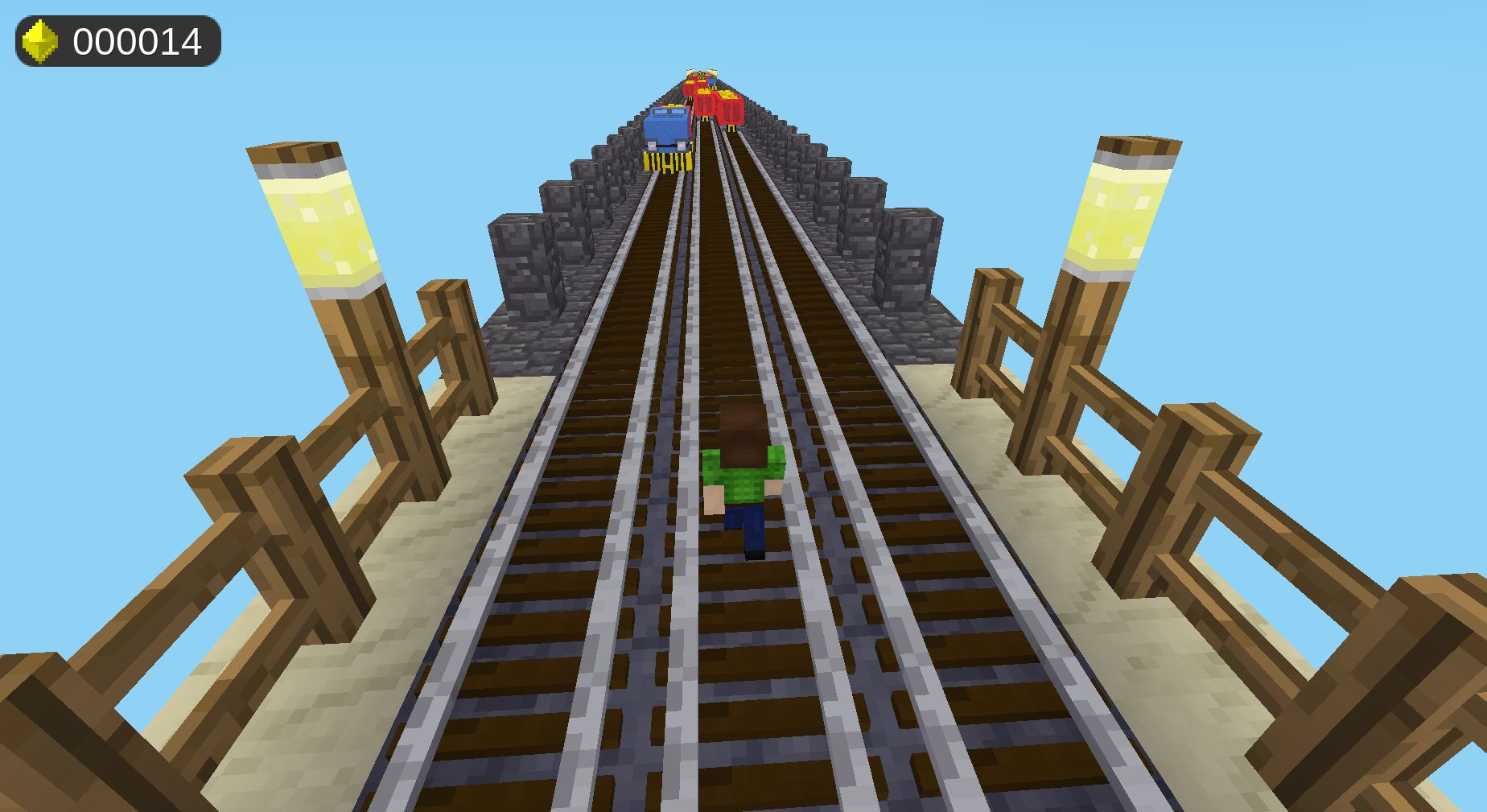 It's quite unstable, I always see character and world appearing and disappearing for a millisecond on lanes switches, mese appearing suddently at random some blocks away from the character and sometimes I lose after sliding under high barriers despite I was still clearly on sliding moment 🤷️. It's also possible to hold spacebar to jump through anything except high barriers, you must be fast on avoiding them. So you can pause the run, hybernate and resume the run again the next time, potentially an endless run 😉️.
