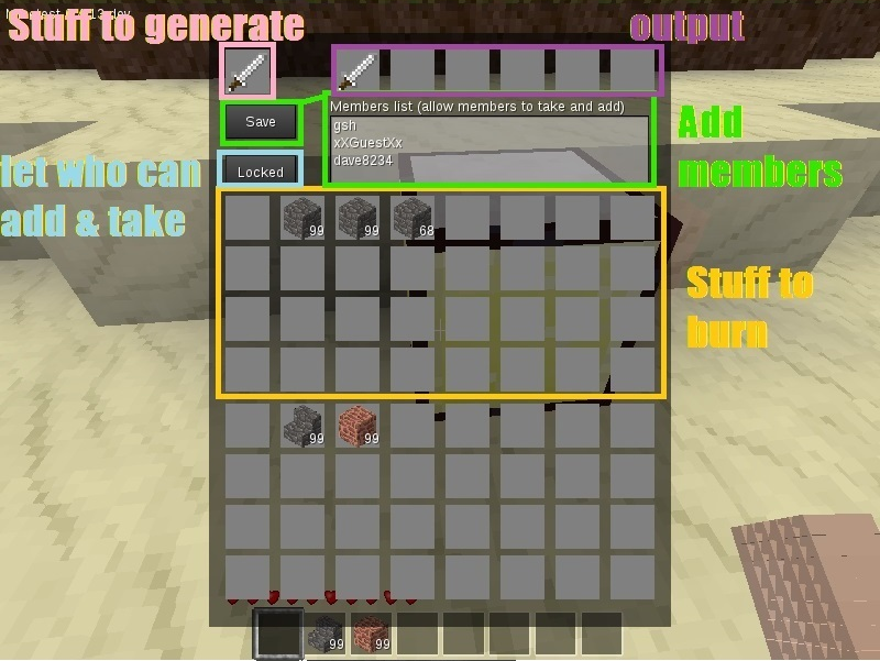 Locked: only you can add and take. Members: everyone can add, you and members can take. Generally: everyone can add and take.