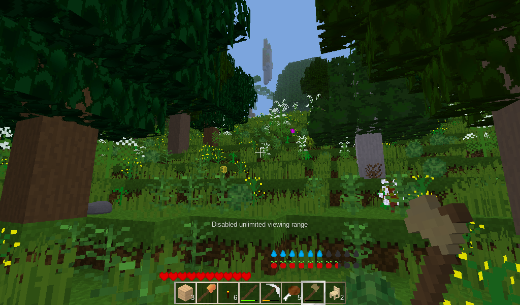 I feel like I should still point out some of the bad parts of this game in the interest of giving the dev actionable feedback. The biggest problem that I see right now is that most interfaces are really cluttered and poorly designed, including some particularly annoying behaviors (eg. pressing enter in the search field closes the craftguide instead of searching). Additionally, while it's neat to see animals and npcs all over the place the volume of sound effects feel really out of wack. It's hard to describe, but it feels like everything is next to you even if it's rather far away. Finally, more feedback and polish on the parkour would be really helpful. You have a neat system, but it can still feel pretty unclear and disorienting at times.