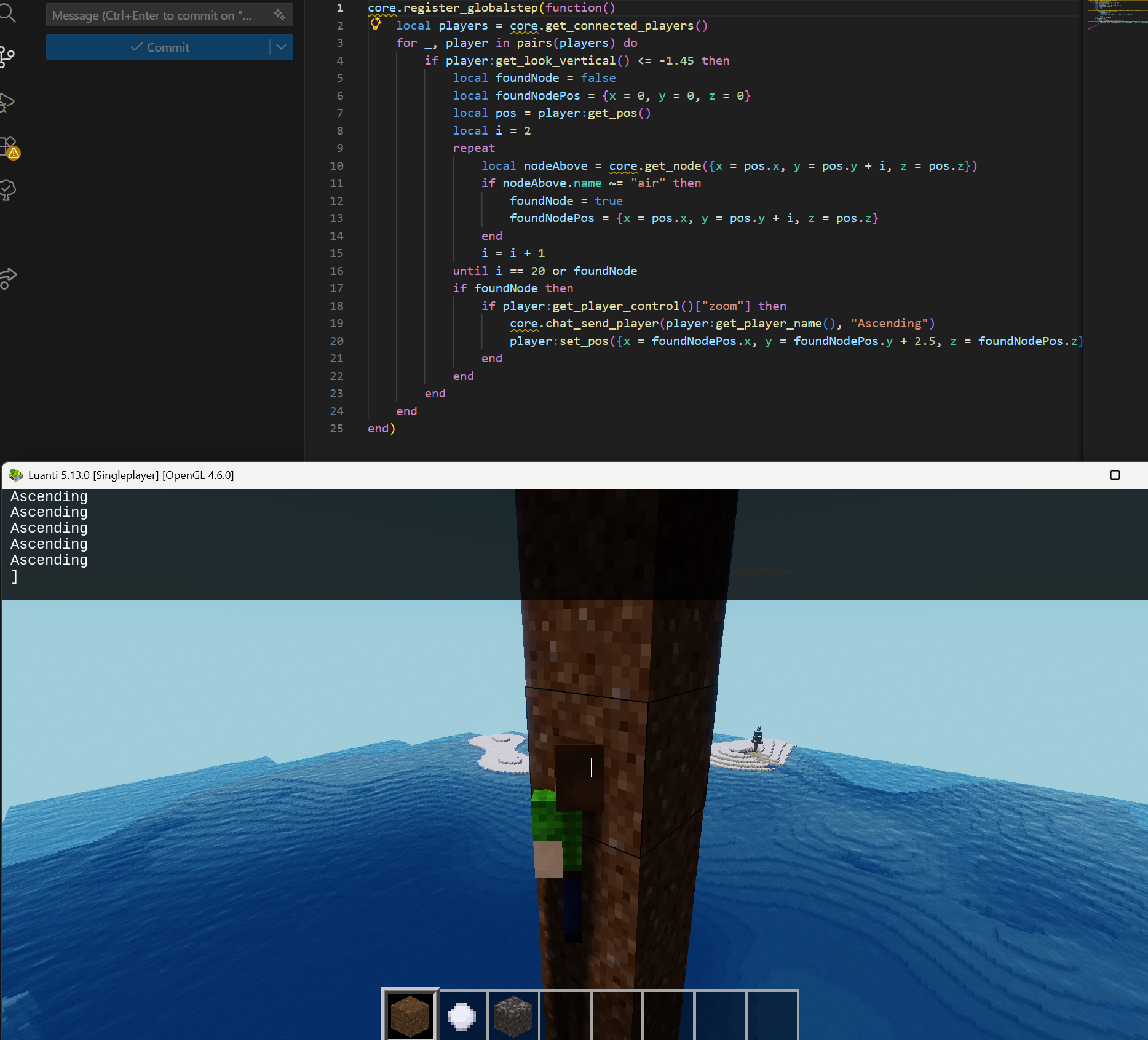 Ascending mod for Luanti/luanti games! Look up and press Z to ascend through blocks like link in TOTK. Except...Without the cool animation.