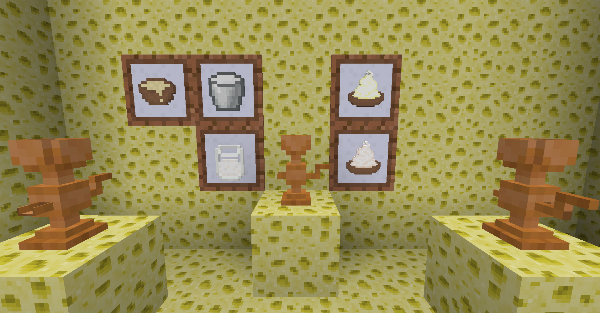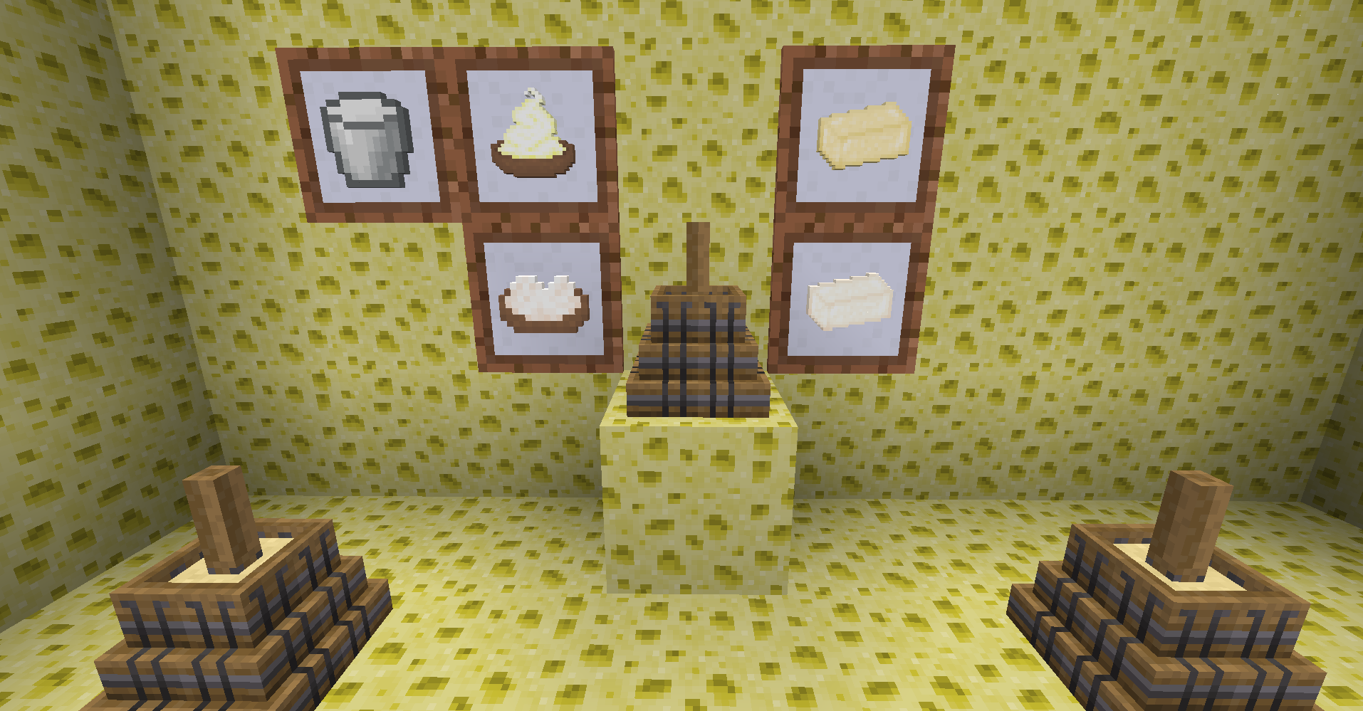 Yet another dairy product, Butter! Much like the Cream Separator, you need to craft a Churn and right click it to get some golden Butter. You can use milk to get one piece of butter, or Cream to get 3.