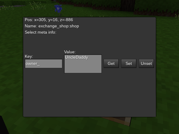 A mod that allows administrators with server privilege to examine & alter node meta data. Additionally, a pencil & key tools are provided with limited use for players to alter infotext & owner meta value.
