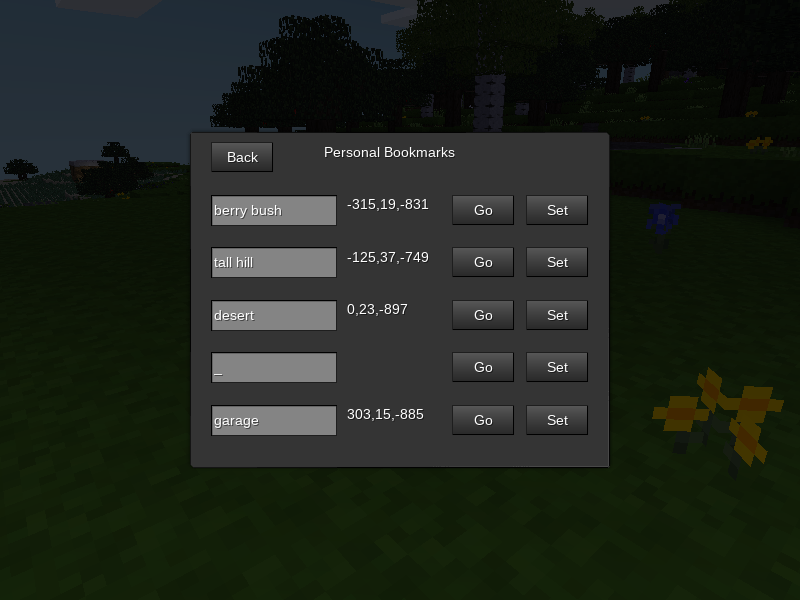 A mod that allows players to create a limited number of personal bookmarks to where they can teleport.