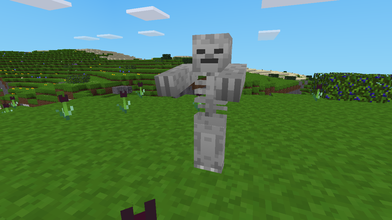 This guy takes a lot of damage, wich using stone tools means that you might loose some of them trying to take it down. I recommend deleting the "nametag" line in the "entity.lua" file in the mod files since otherwise you will see this guys´ name trough walls from a good distance. I would like to suggest to the mod author to add the option to enable and disable the nametag and add compatibility with the bonemeal mod or some mod that uses bone since for now killing the skeleton gives no reward beyond staying alive.