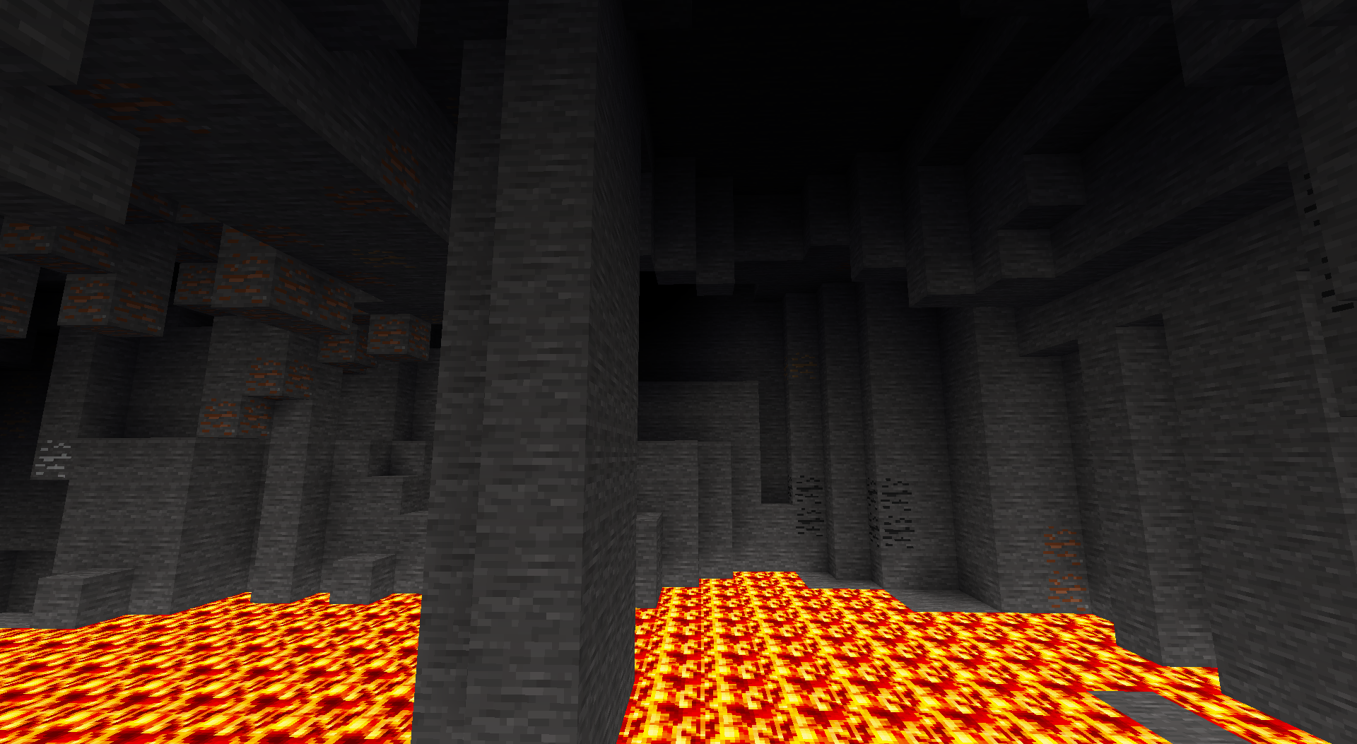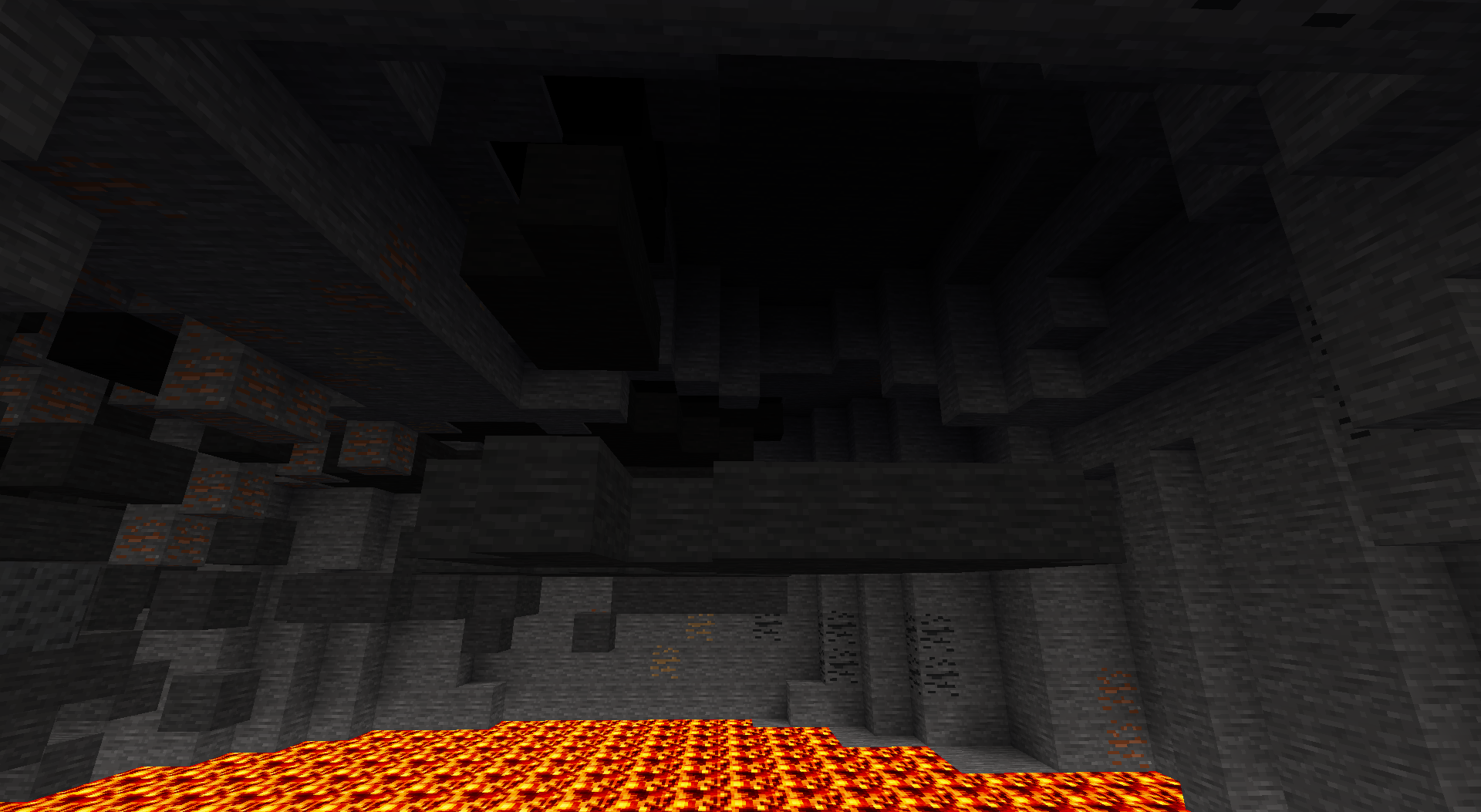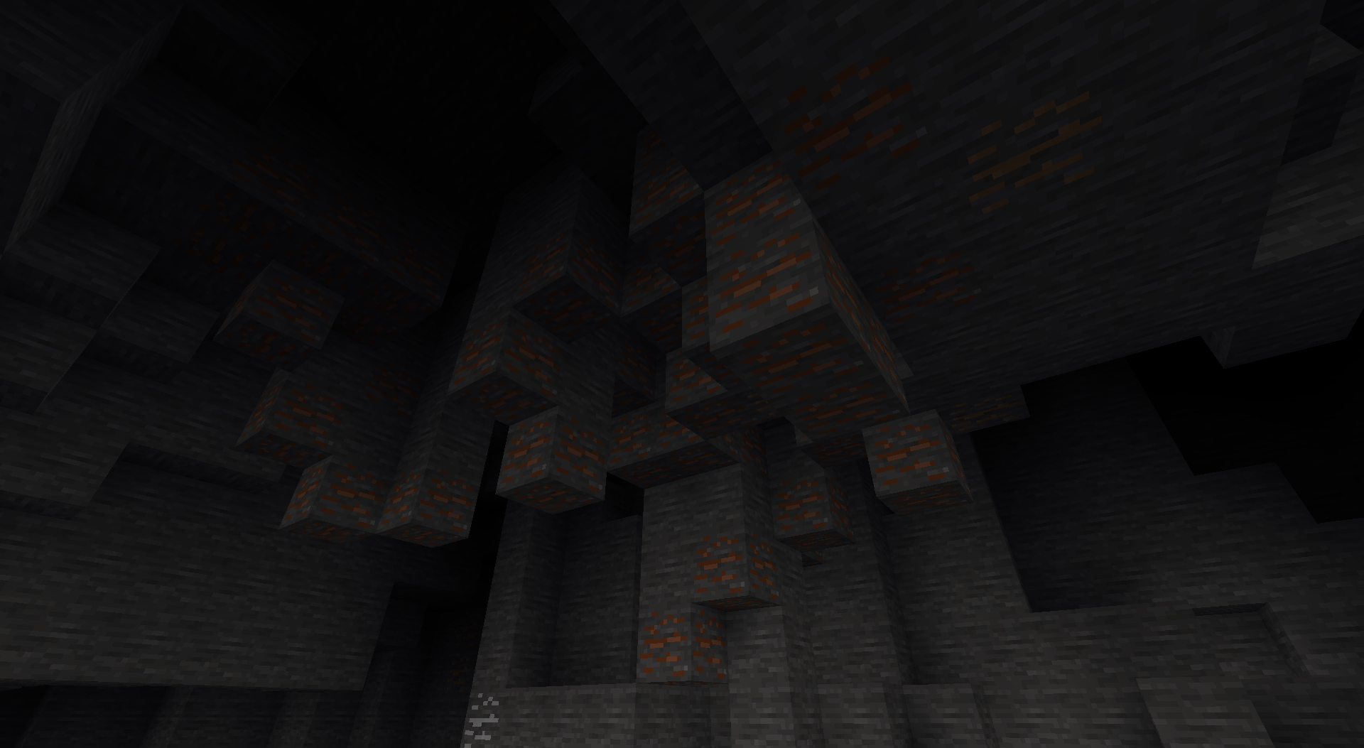 Generates clusters of "unstable stone," to which gravity applies if punched, just like sand or gravel. One wrong move could cause a cave blockage or even bury yourself. Caves may become unstable past 32 blocks below sea level.
