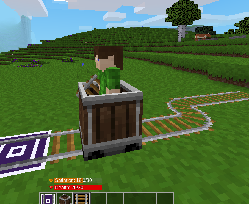 If you want to travel up or down (e.g. for fast access to caves or sky islands) you do the same but up or down. The track must be sloped upwards or downwards (i.e. the piece of rail track after the portal rail will be a block higher or a block lower than the portal rail).
