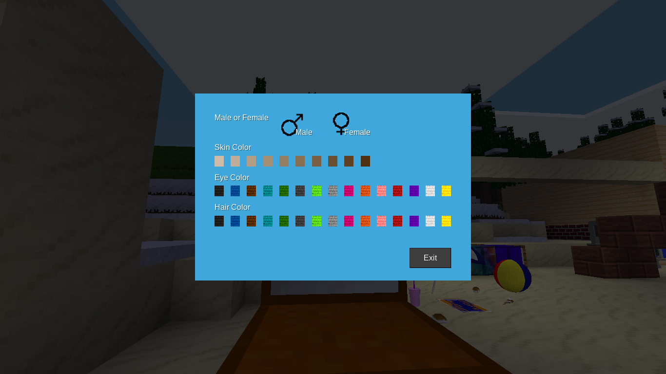 This mod allows you to change your appearance. You can be a male or female. You can change your skin color as well as you hair and eyes. You can change the color of your clothes. There are hundereds of possibilities!