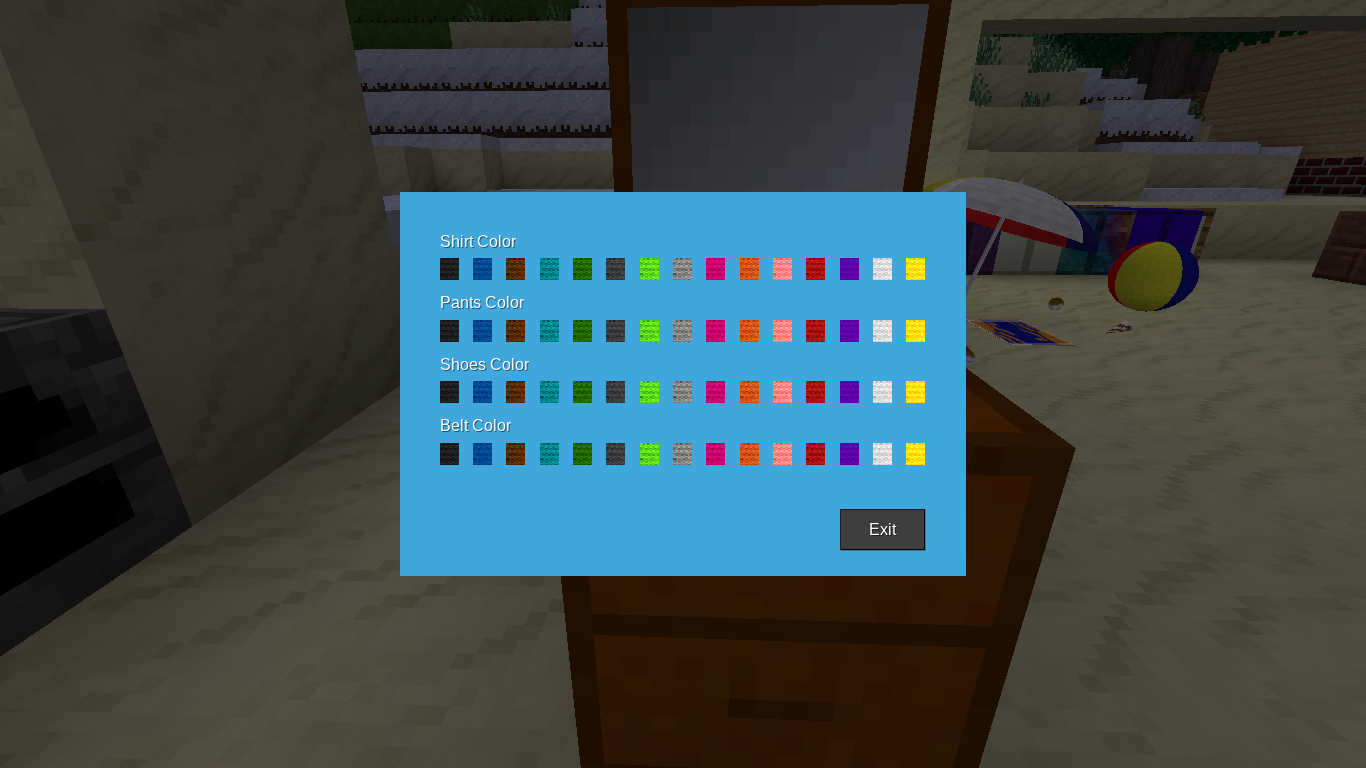 Right click on the bottom to change the color of your cloths.