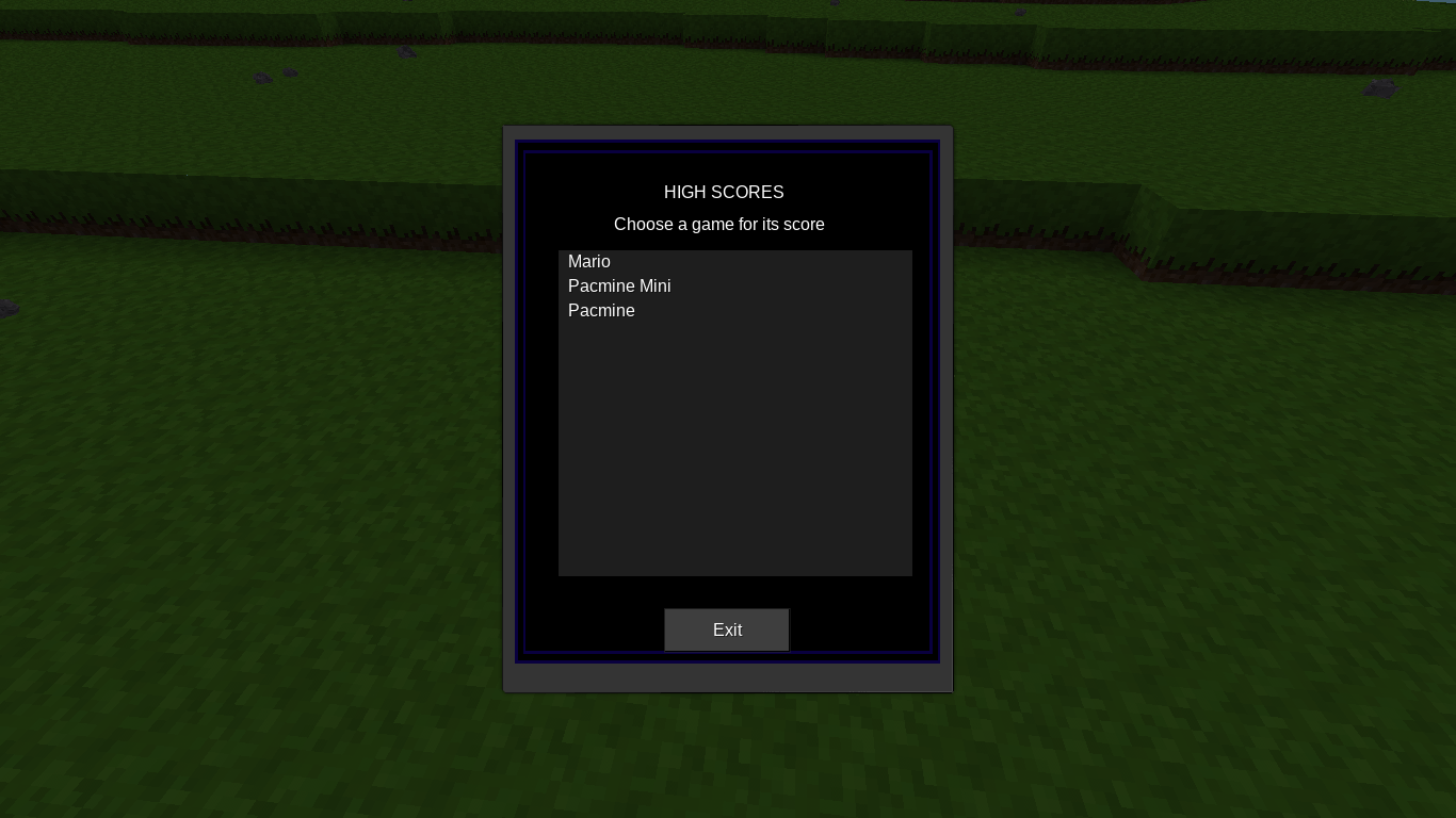 This modpack includes several mods that add arcade game boards to Minetest. If your score makes it into the highscore of the server your name will be registered in the highscore arcade machine for the game you were playing.