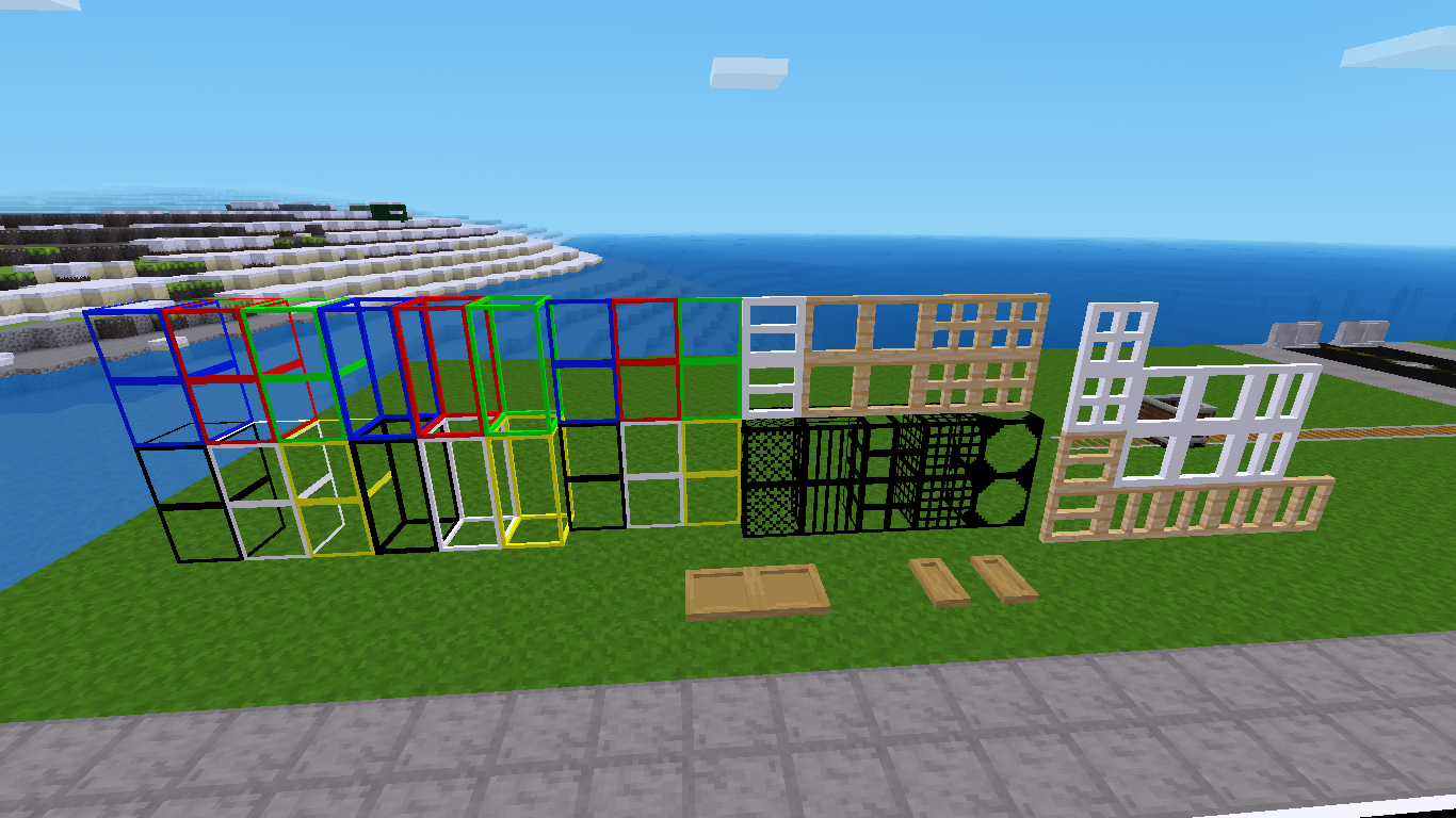 Different types of windows and glass. It also has a couple shutters. There are 6 different color glass and 6 framed glass. There are different styles so you should be able to find what you need.
