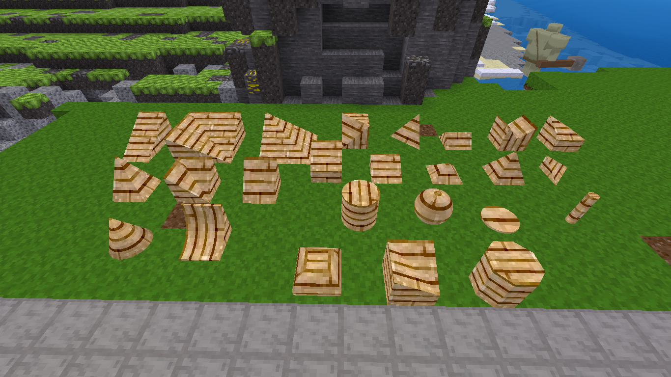 To use simply craft a mesh machine. Then put in the block you want made into a shape and click what style you want.