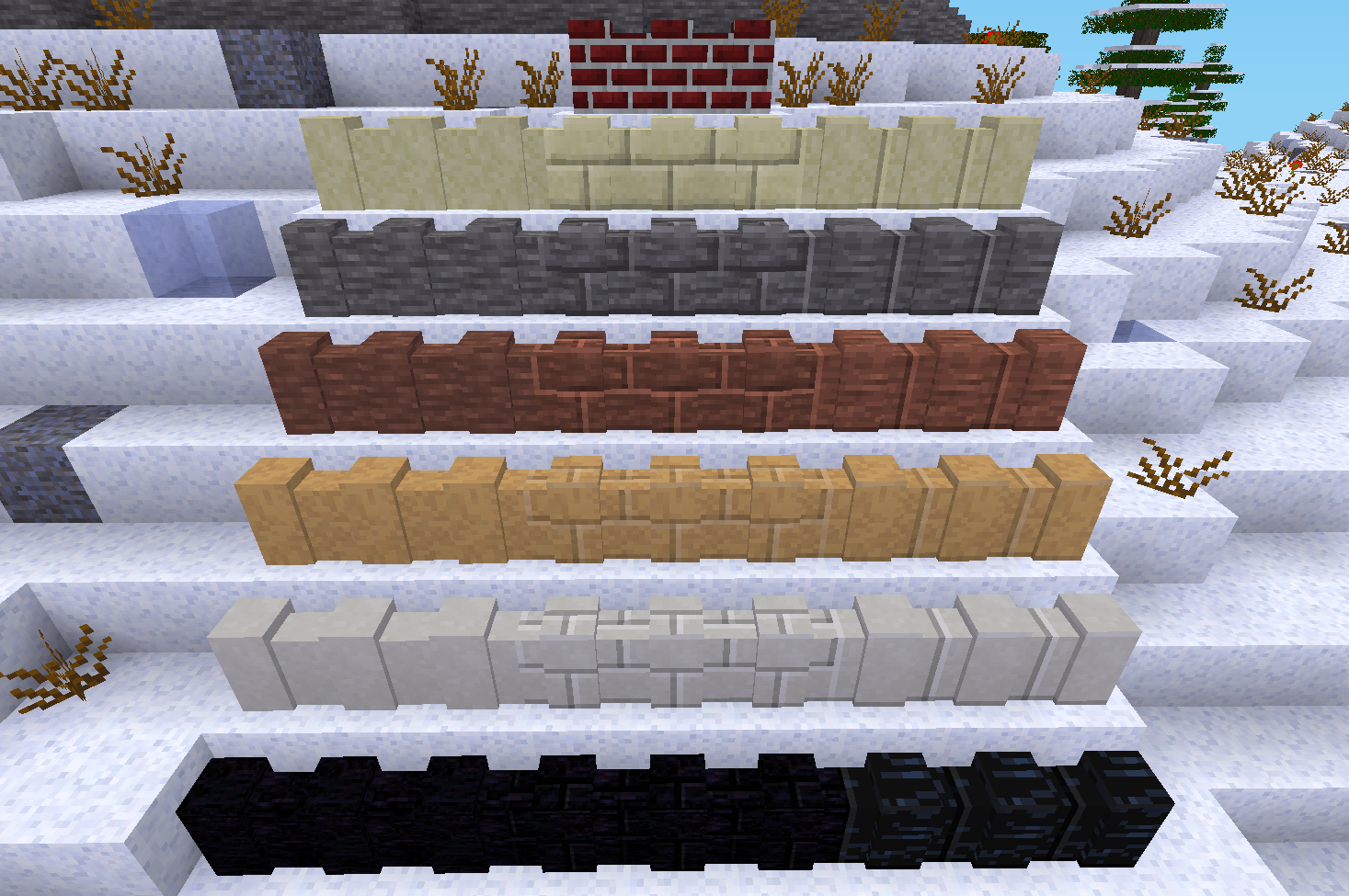Previously, this mod only contained a limited set of additional walls, however as of recently it has been updated to add wall variants for every stone-like node in Minetest Game, surpassing the walls_all mod. In general, it's a good mod if you want to expand the selection of wall nodes in your builds.