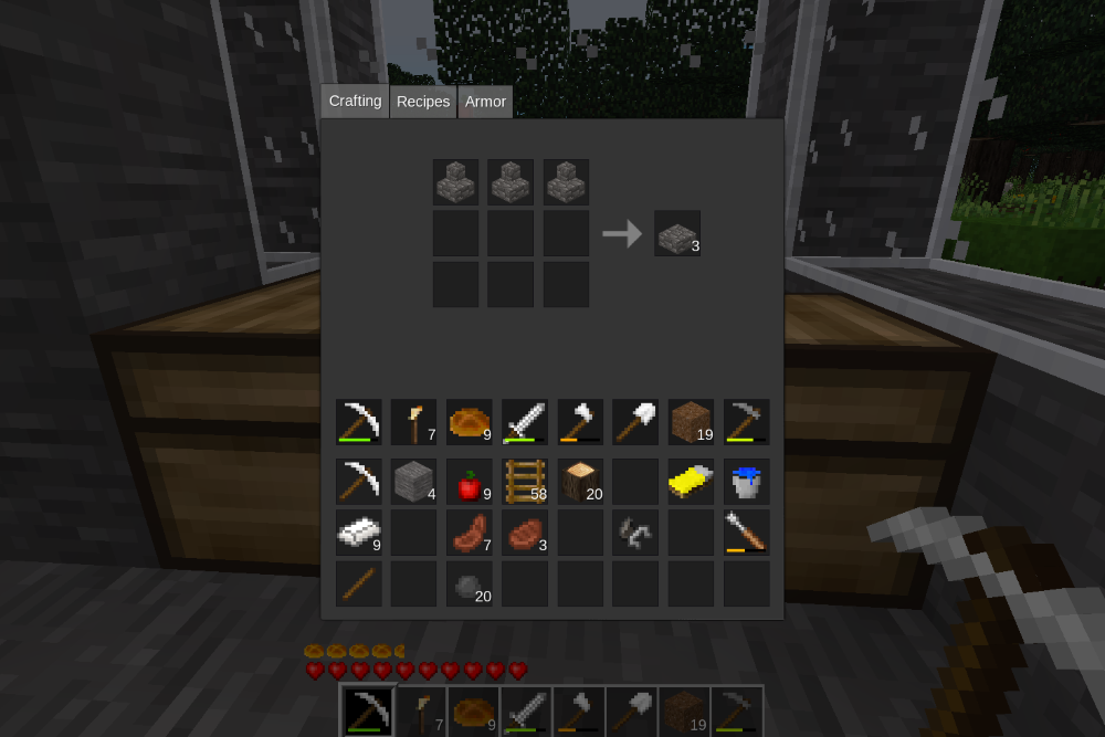 Turn stairs into slabs, different stairs, or back into blocks. Smelt cobble stairs into stone stairs. Highly recommended for Oneblock survival.