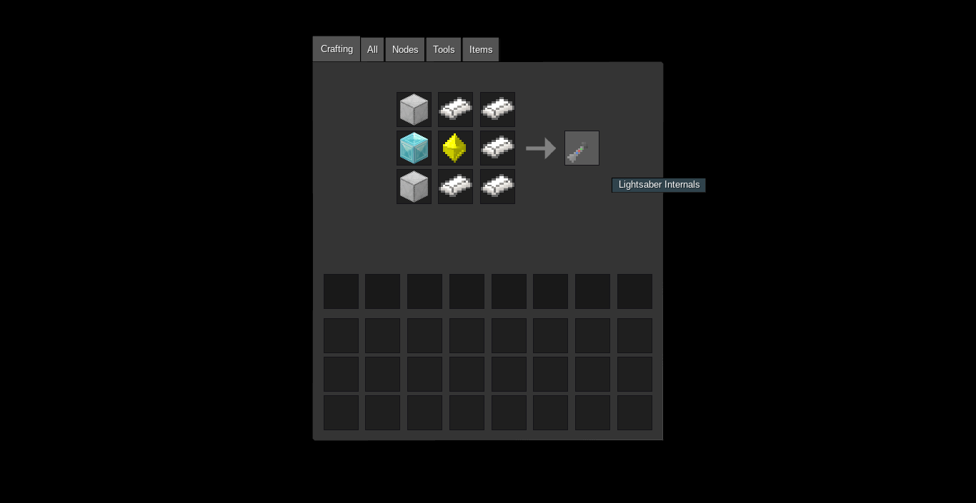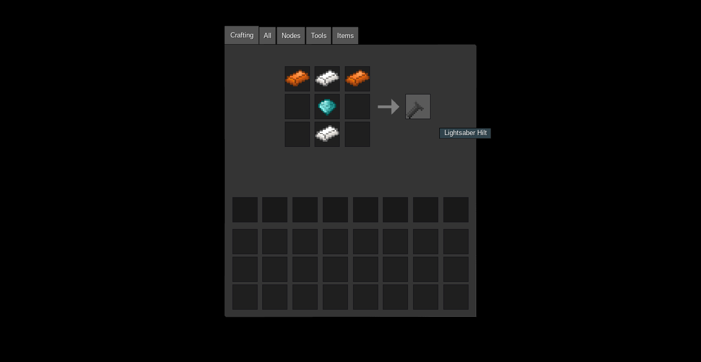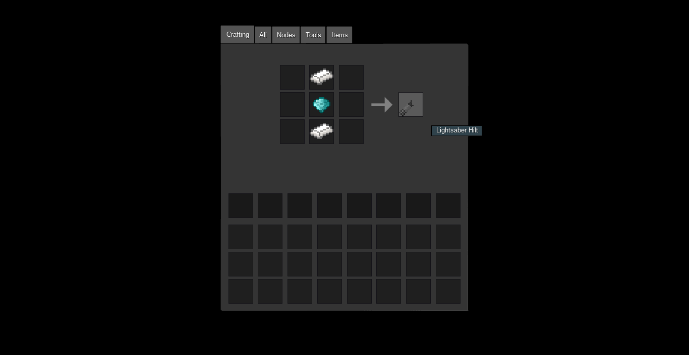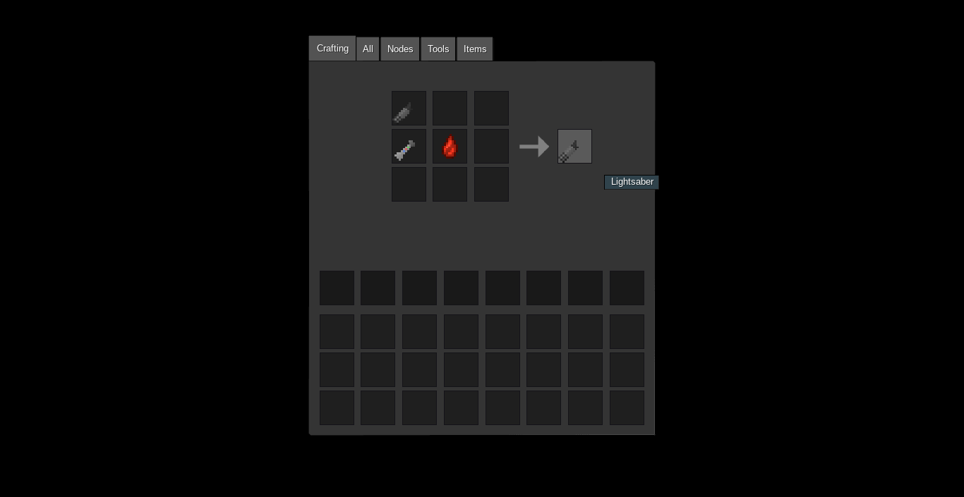Adds Lightsabers with 3 hilt varieties and 3 colors: Single Bladed, Crossguarded, and Double Bladed. There is no difference in damage between them so mix and match colors however you like.