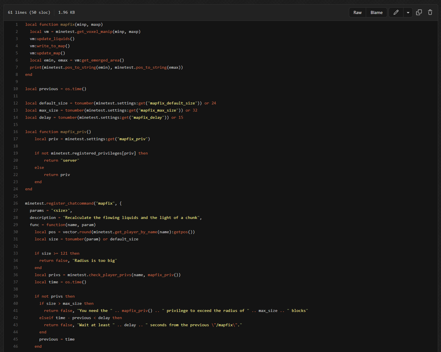 Usage: /mapfix <radius> to fix flow and light in a chosen radius, or simply /mapfix for a default radius of usually 24.