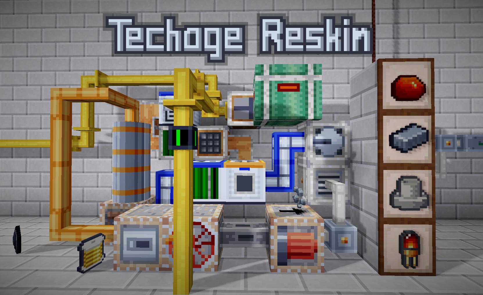 This pack applies to the Techage Modpack (and the Basic Materials Mod) for Minetest Game, changing most of its textures to a 16x16 format and changing its visual style. The aim is to be more visually appealing and fit in with Minetest Game's native resolution.