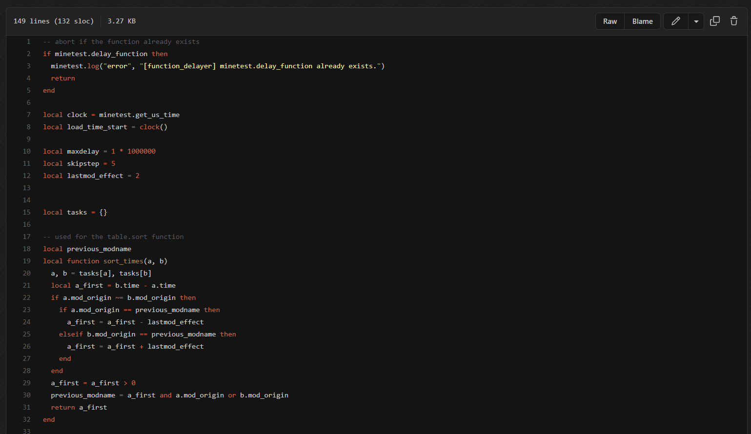 and minetest.delay_function executes the function after a specific time only if it's lagging, the function can be and is usually executed earlier.