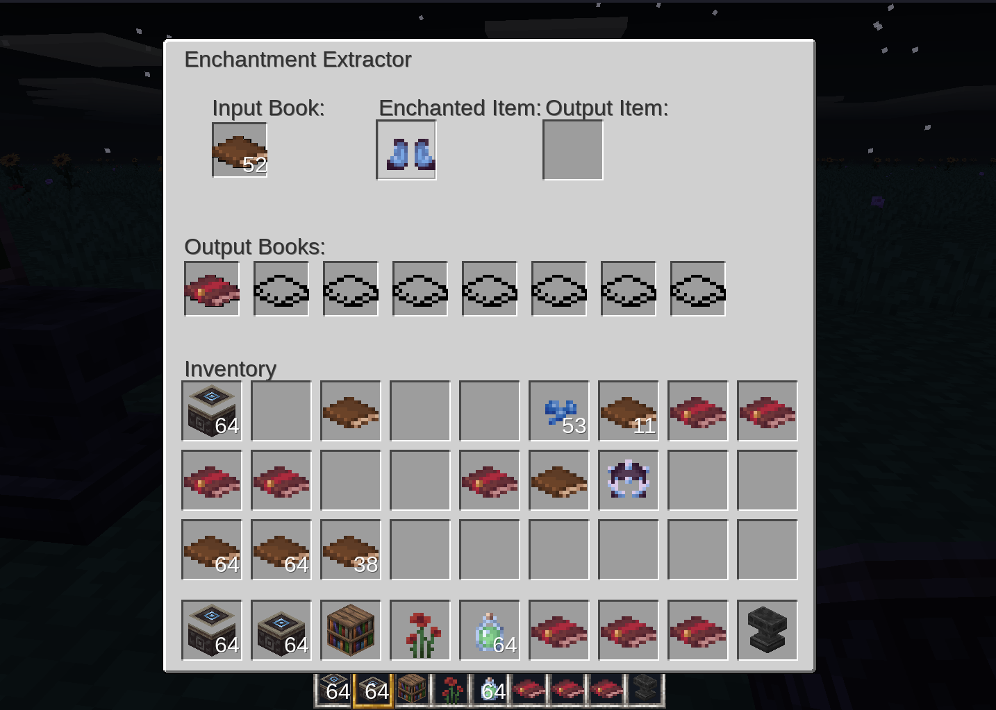 I wish we could easily duplicate books in-game. I guess that's out of scope for an enchantment extractor, considering the base game doesn't support duplicating books. But one would think if something could be written down, it could be copied. Or maybe combine enchantments, like "Unbreaking I"+"Unbreaking II"="Unbreaking III" or at least "Unbreaking II"+"Unbreaking II"="Unbreaking III." But again, that's not extracting enchantments. Perhaps we need a separate mod for that!