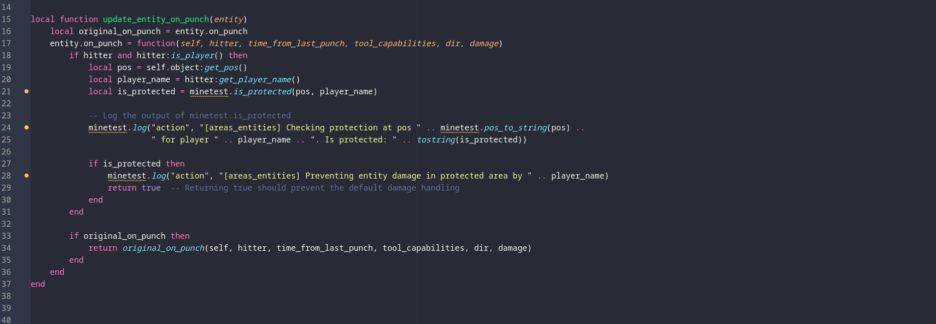 - Entities within protected areas will be protected from damage by players who are not the area owners, subject to the configuration settings.