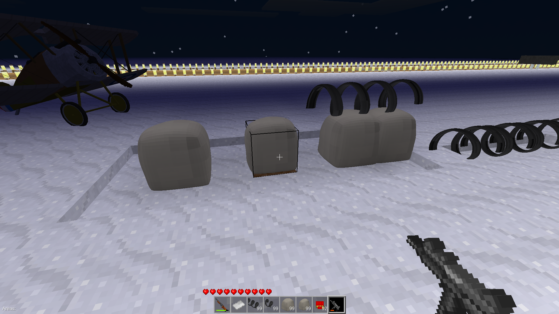 Sand textures from Voxelibre and Minetest Game (changes based on which game you choose), and gun texture is from Nate's CTF guns.