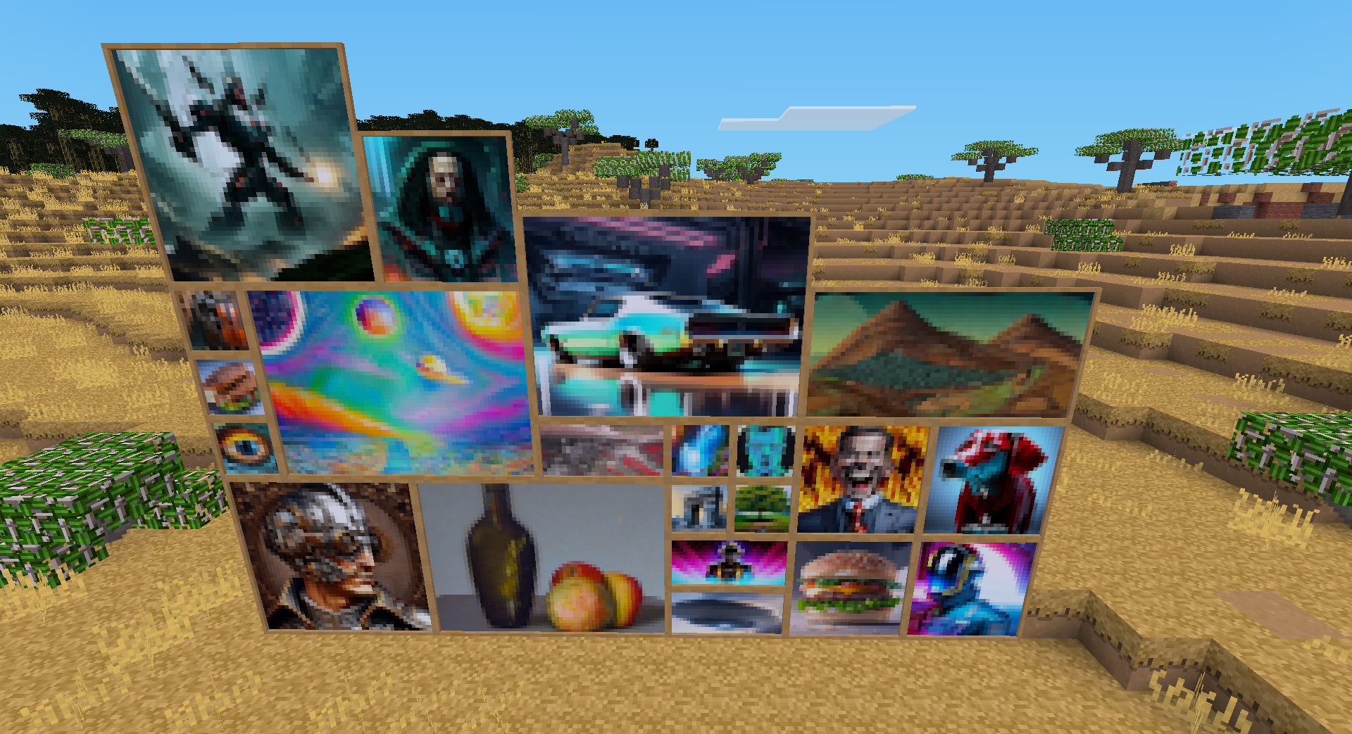 Paintings Gallery uses Paintings Library to add over 200 paintings of various topics and styles. It is meant to be a good edition to creative or survival. It will not work without paintings_lib. Go here for the dependency: https://content.luanti.ru/packages/JoeEnderman/paintings_lib/