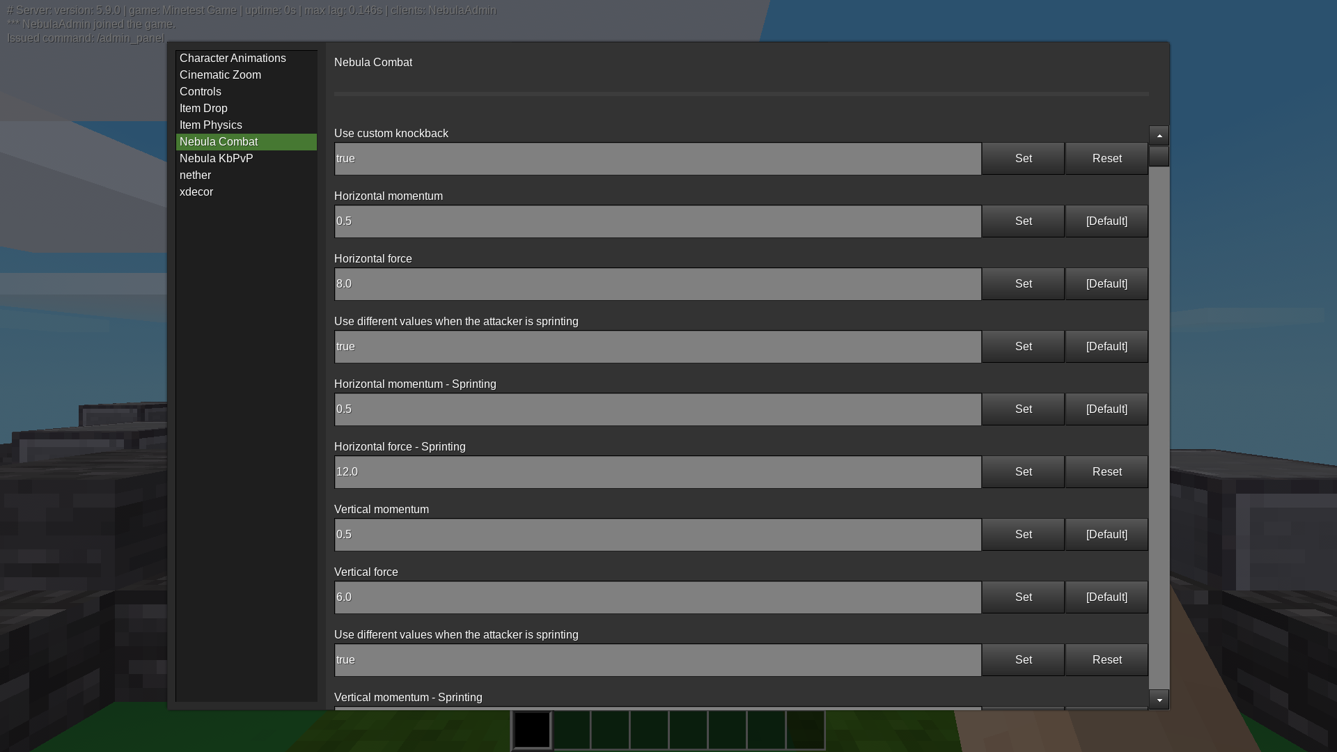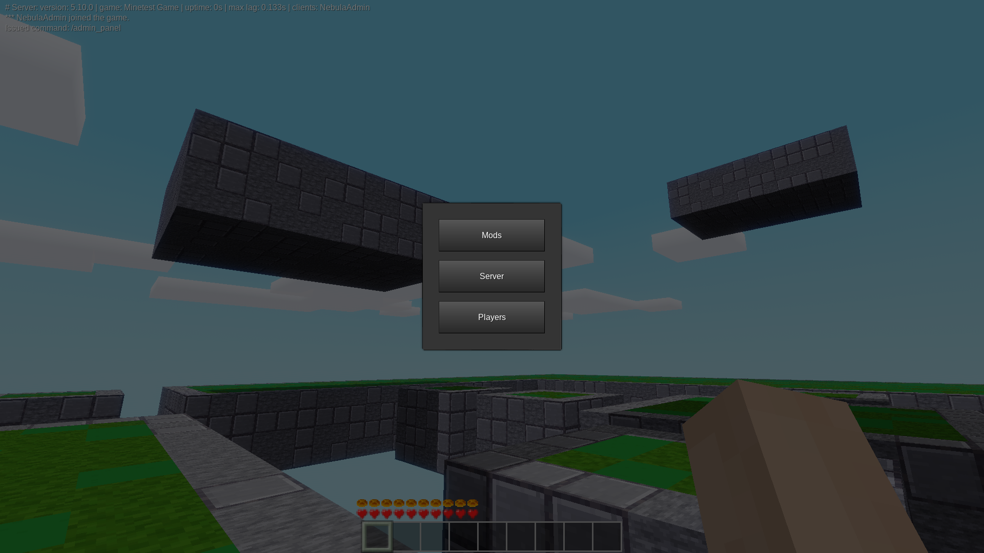 To open the admin panel, use the /admin_panel command. You need the nebula_admin_panel privilege to use this command.