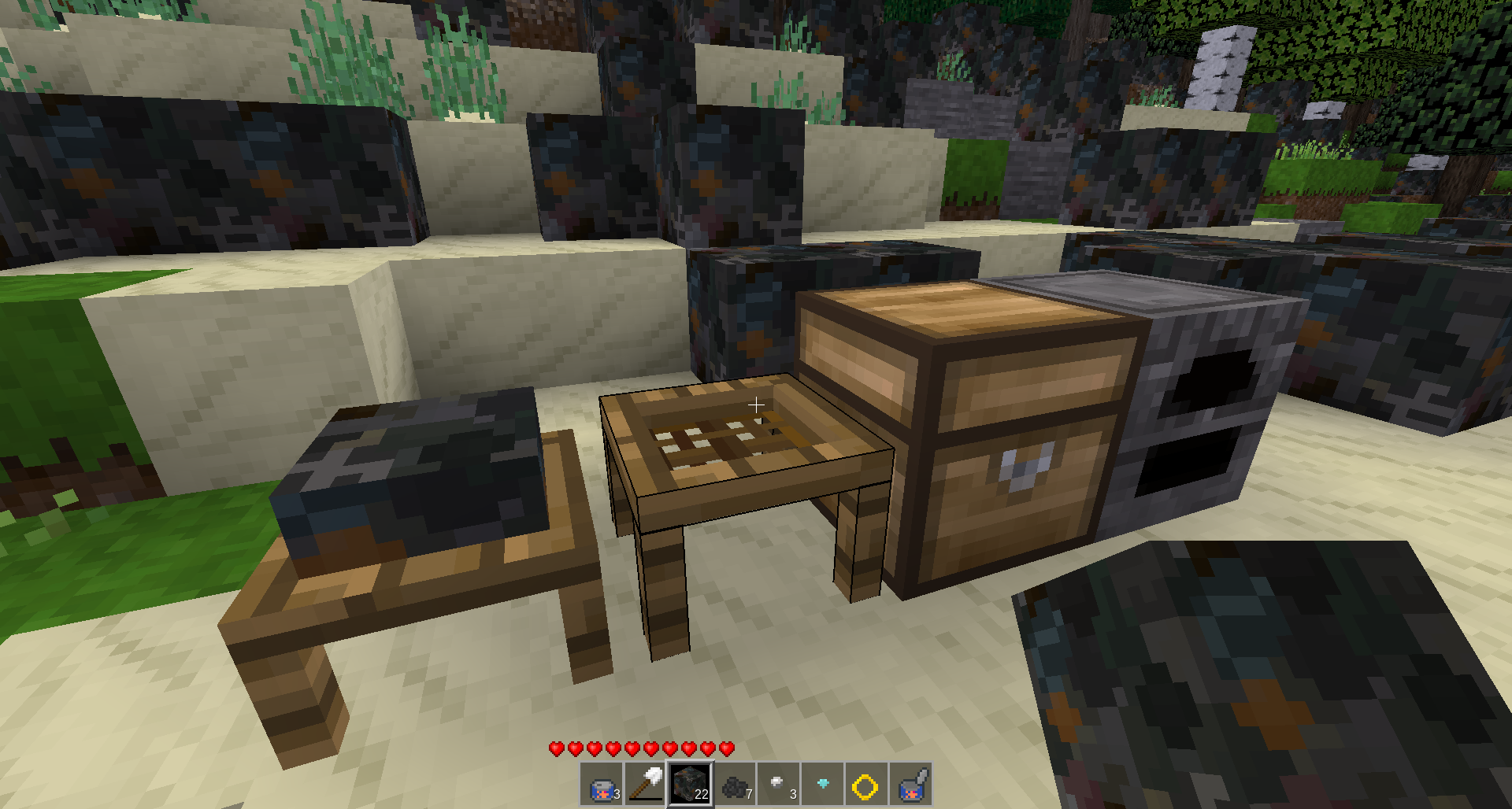 - Rubejon: Vi povas aktivigi la Rubejon en la agordoj, kiu transformos ĉiujn biomojn en dezerto kovrita de ruba tero, kiun oni povas kribri por akiri puran teron kaj rubon. Agordo: Enable Wasteland