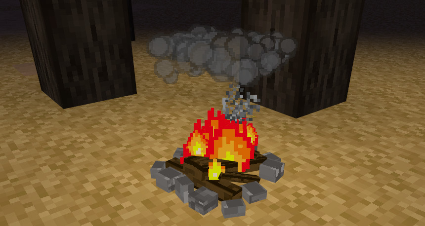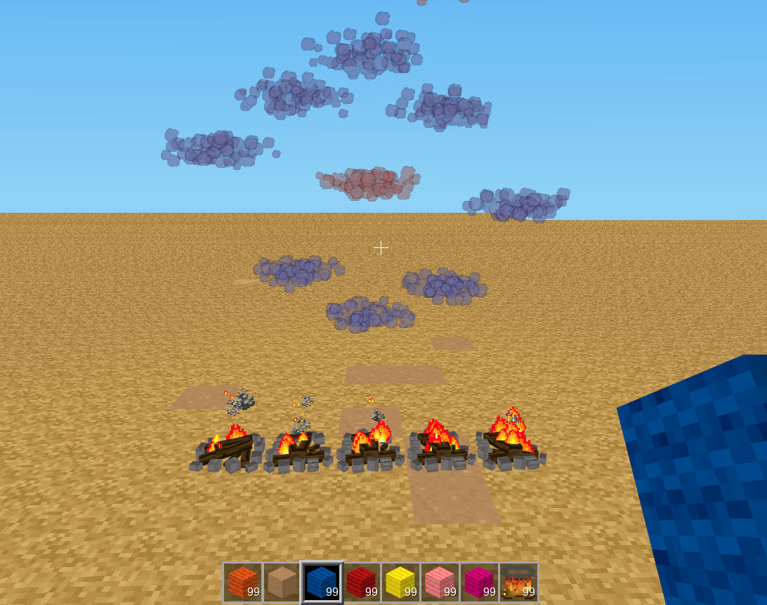 Once placed, simply hit the fire with any color wool and... poof, a burst of smoke emerges and rises.