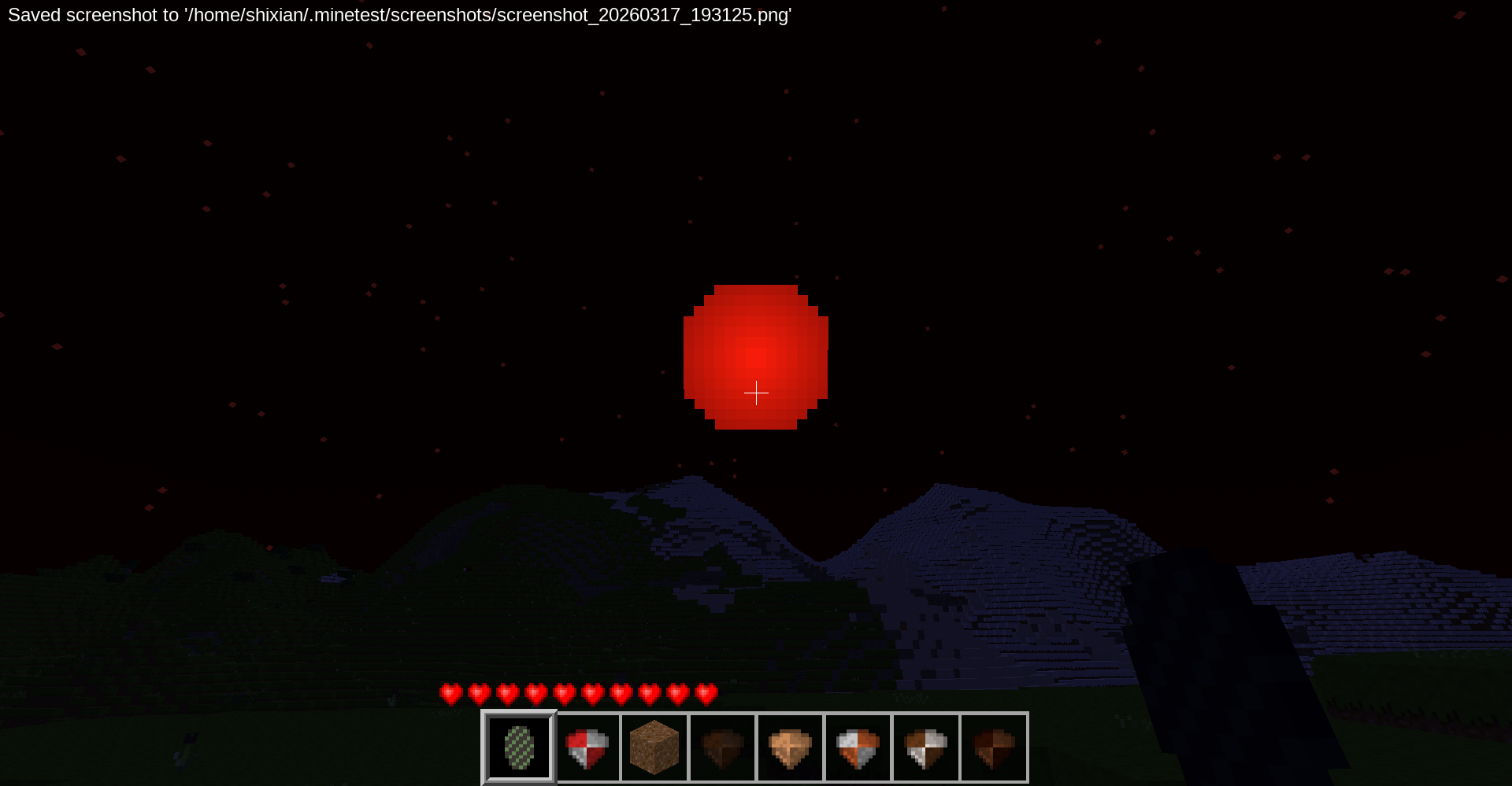 Random blood moon events for Luanti. The sky turns red, a massive crimson moon rises, and hostile mobs become far more dangerous.