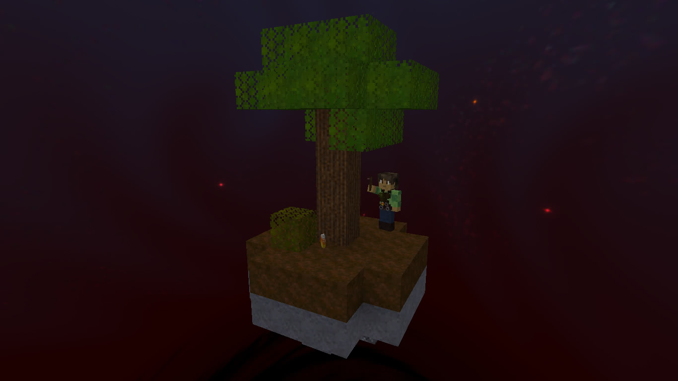 The world has been replaced with an array of identical floating sky islands scattered a considerable distance from each other. Each player starts in a different island. If you fall off into the void, you may restart on a new island and finding your way back to your old one will be difficult, if not infeasible.