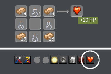 This server mod provides upgradeable packs in form of items to players which give them additional health or breath. However, the better the health packs are and the more of them you use, the faster they will wear out. Please note that the builtin HP bar maximum is always 10 hearts. With two additional "+10 HP" packs, one heart equals 4 HP (instead of previously 2).
