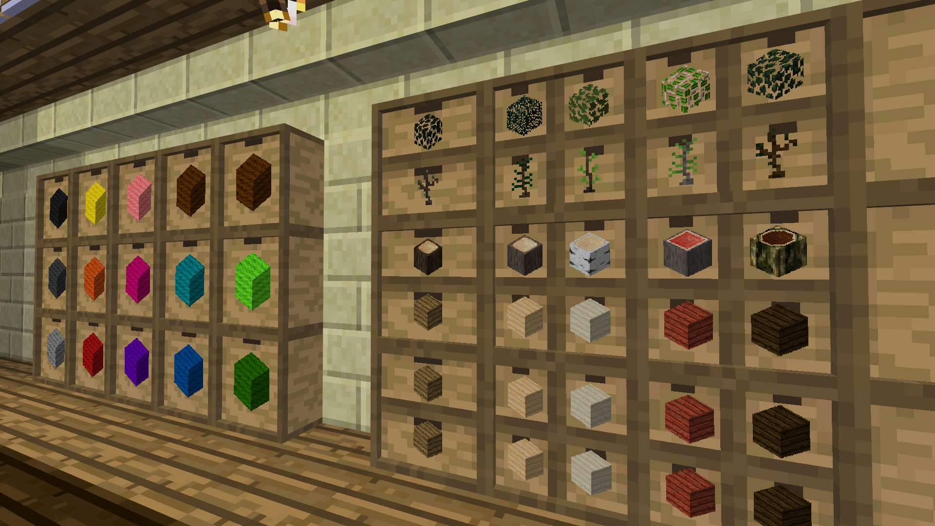 I love this mod simply because of the visuals alone, the shelves kind of jut out a little and they come in all vanilla wood types, once you insert and item, it will show the icon allowing you to identify where you actually put your mese blocks, pretty useful especially compared to signs which are not visual and can be quite blande, essential when working with tech to spice things up in an otherwise grey and bleak environment