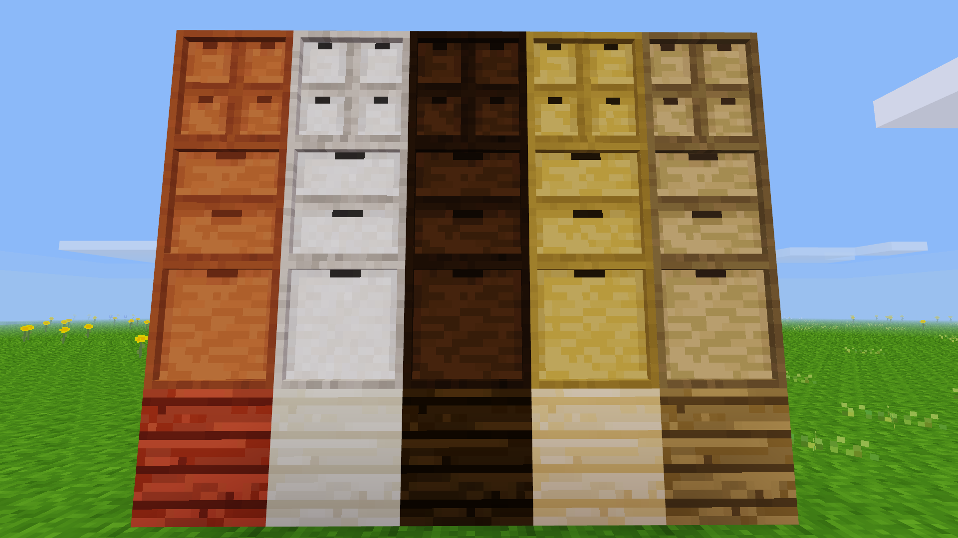 pretty nice and really useful mod, though in voxelibre and mineclonia the 'spruce' and 'dark oak' drawers look nothing like thier respective wood