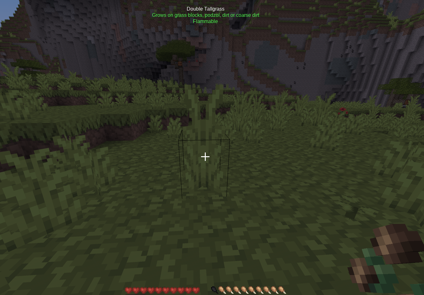 Displays real-time information about objects in the player's crosshair, including block names, player names, and entity health.