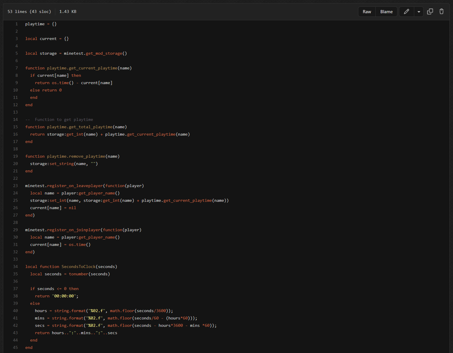 The Official Minetest CTF server uses this mod. And I can check if I am spending too much playing the game. You know too much spending time on playing video games is not healthy especially since you can't break every 20 minutes to rest your eyes during the playtime on a PvP server.