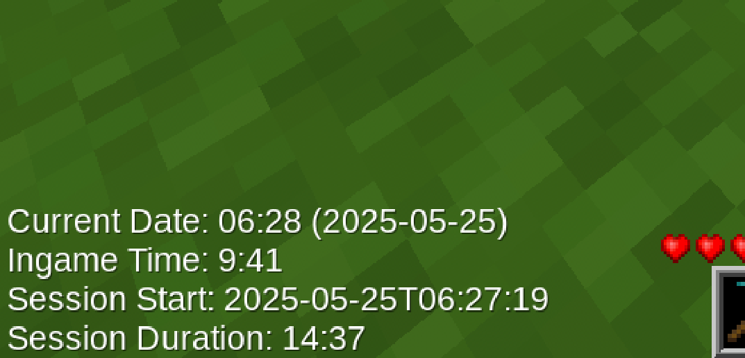 Use it on your public server to give your players additional value (players can individually hide the timer if they want) while being on your server or use it in your singleplayer world to stay informed or – when creating creative content for others to watch – give your viewers a hint on when the footage was recorded.