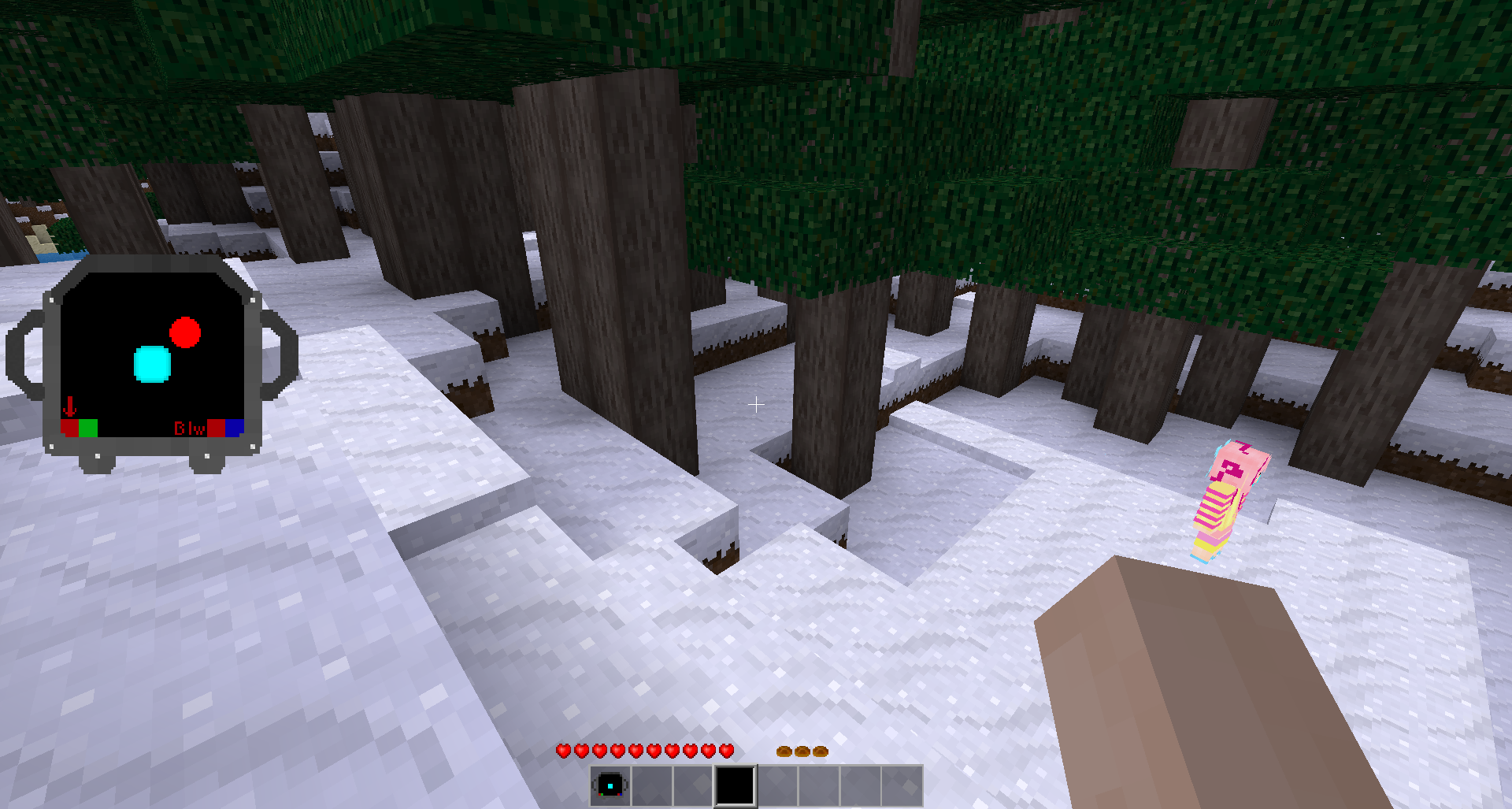 This mod also features a very specil compass that, upon activation, sets up a HUD of a 128x128 compass with a 16x16 red dot which points at the huntee. The activated and deacrivated radars aren't any different, except the HUD (and the very specil optional sounds) may annoy some particular players, so there's an option to switch it on and off.