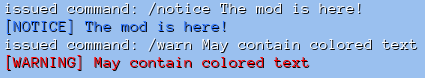 notifyprivilege - Allows players to use the notice commands/notice <msg>- Sends a blue[NOTICE] <msg>in chat/warn <msg>- Sends a red[WARNING] <msg>in chat