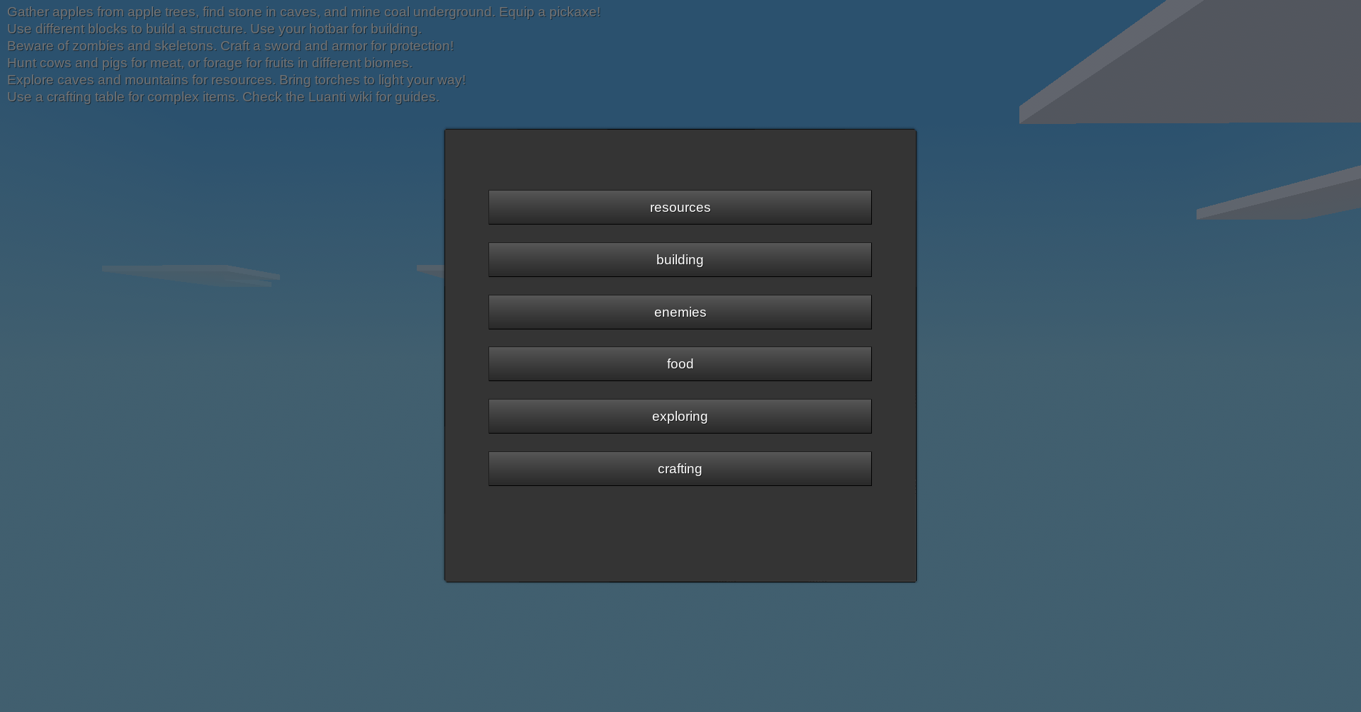 The Chat Guide Mod is designed to provide Luanti players with helpful information during exploration, resource gathering, and building. With a set of simple commands, players can quickly access tips and guidance on how to proceed in various in-game situations.