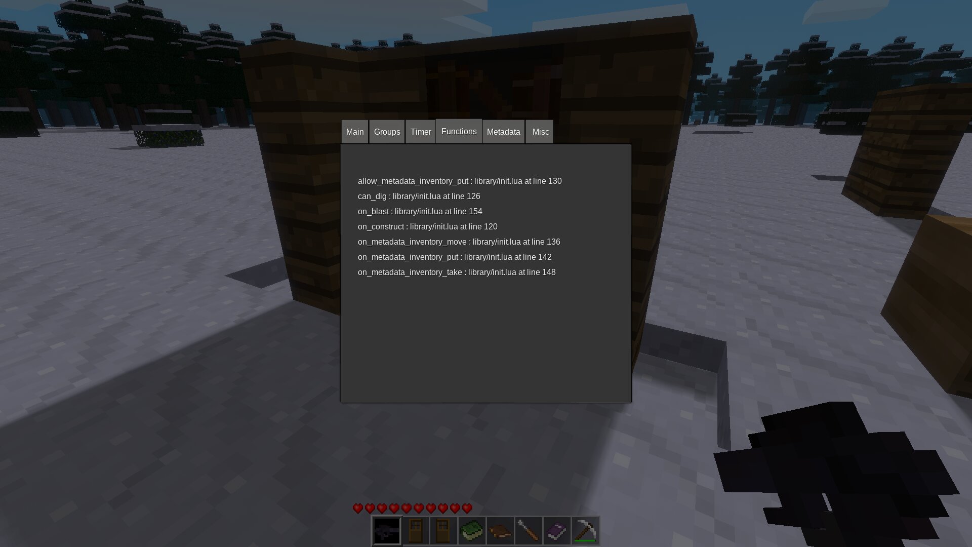 The tool was designed to help diagnose the reason cocoa pods weren't growing in a world I had set up; the on_timer function was overridden, but it was hard to tell what had done it in the huge thicket of mods. Using the functions tab, I could see exactly which file had last done an override of on_timer, and the line number it happened, allowing me to discover the culprit and fix it. The tool also bundles other things I've found useful, with more to come.
