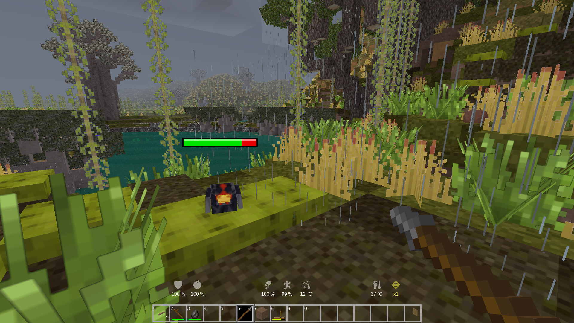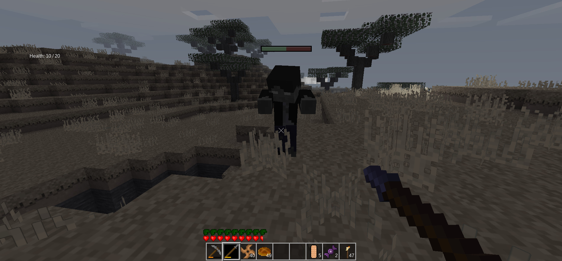 This mod adds a graphical display of a mob's or player's health in the form of a green bar that turns red as the mob approaches death. If a mob is healed to full health, the bar will disappear one second later. If a mob's hp is above its max hp for some reason, the bar will light up to indicate that there are more hit points than can be displayed.