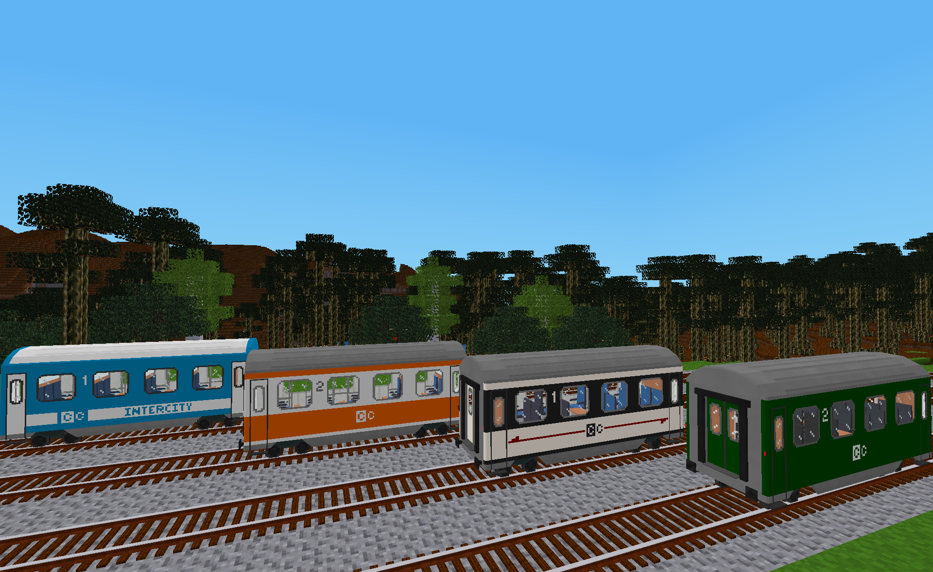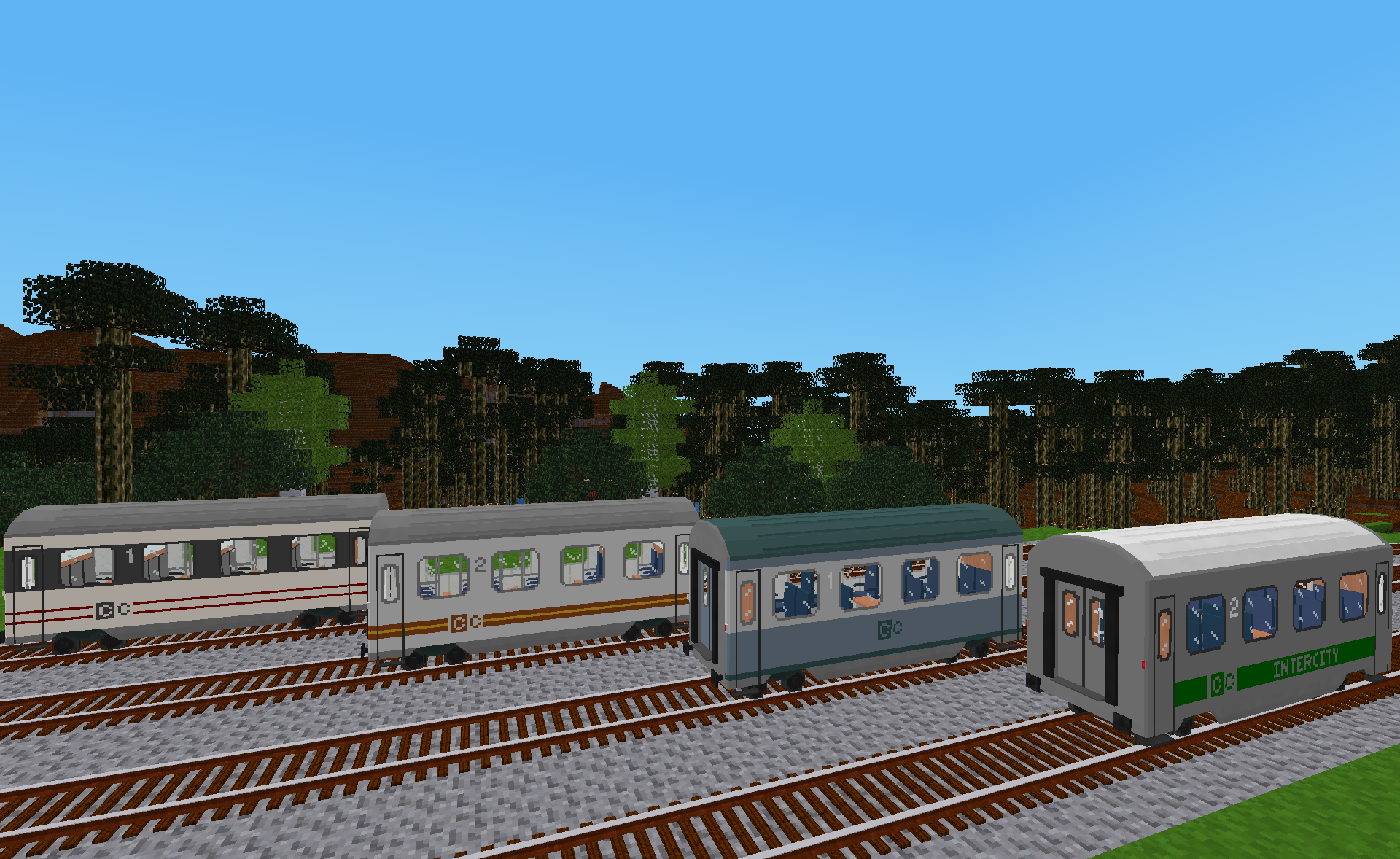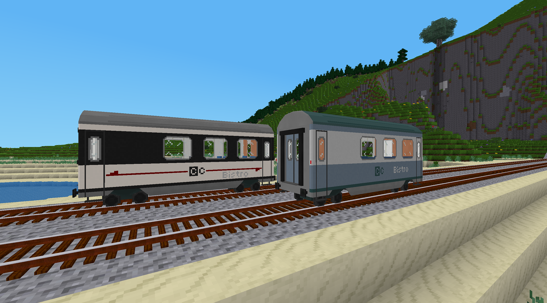This mod is an extension for Advanced Trains that adds a set of four intercity style passenger wagons as well as a bistro wagon, all of which have liveries that can be customized in-game by their owning players.