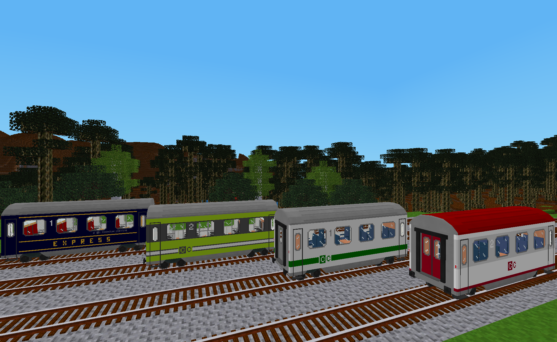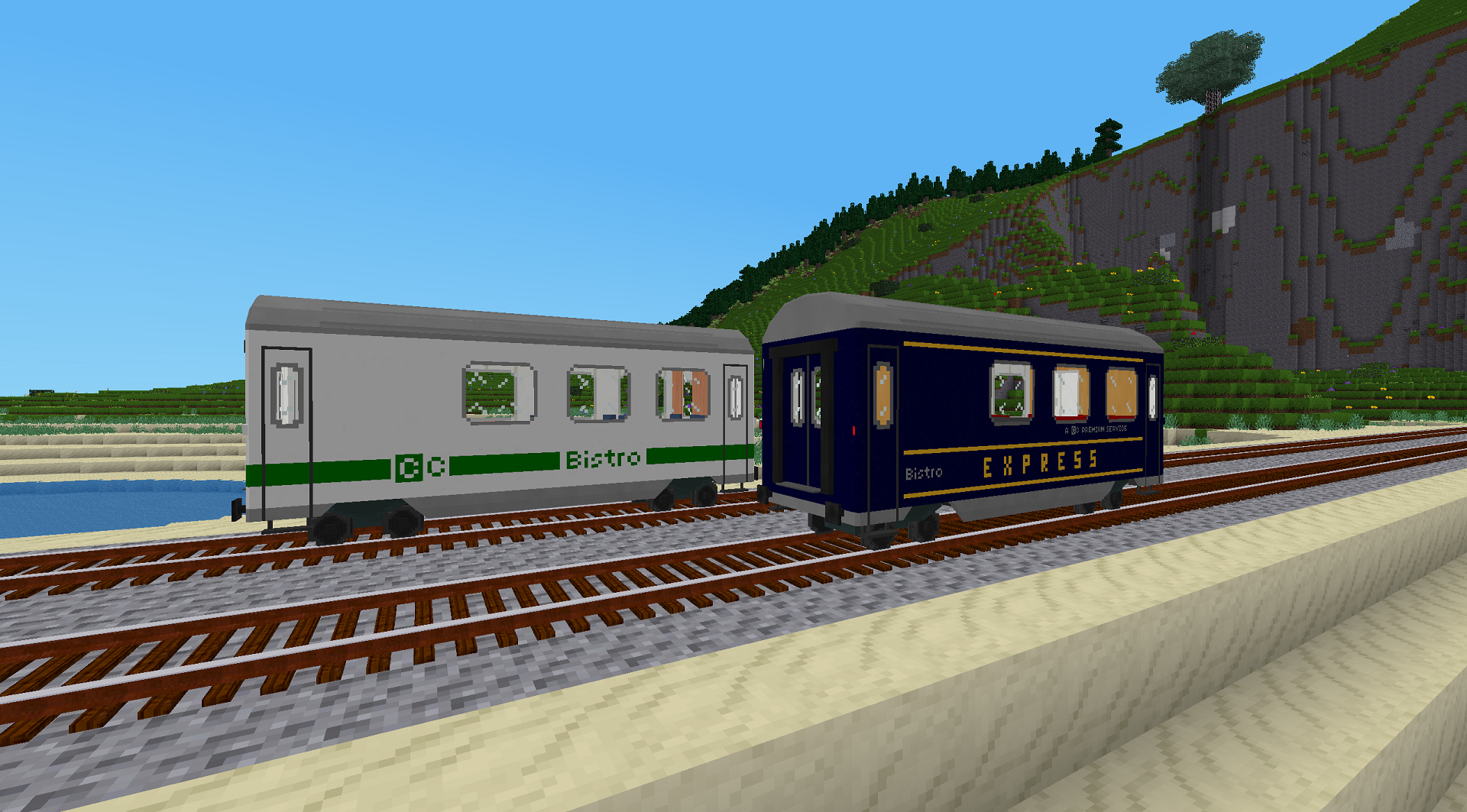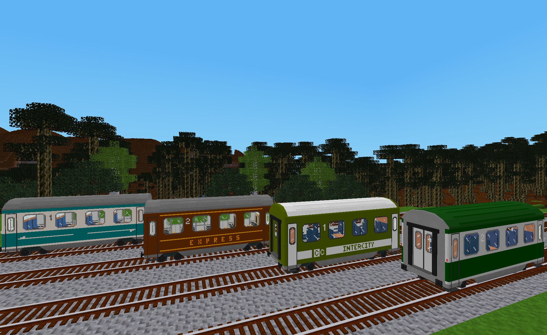 This mod is an extension for Advanced Trains that adds a set of four intercity style passenger wagons as well as a bistro wagon, all of which have liveries that can be customized in-game by their owning players.