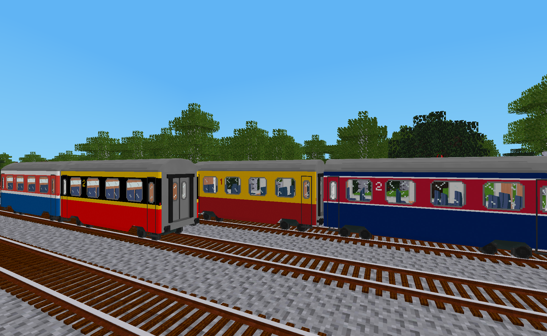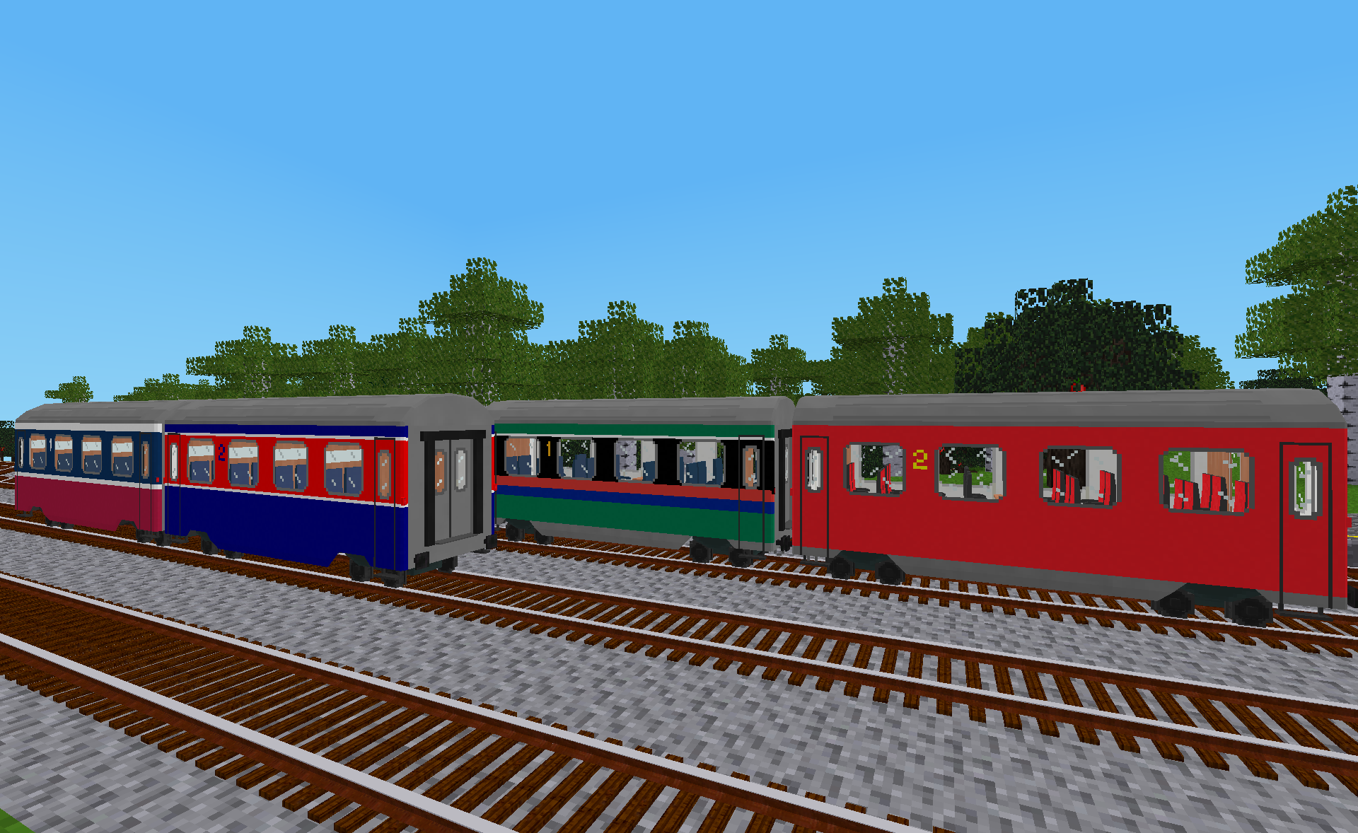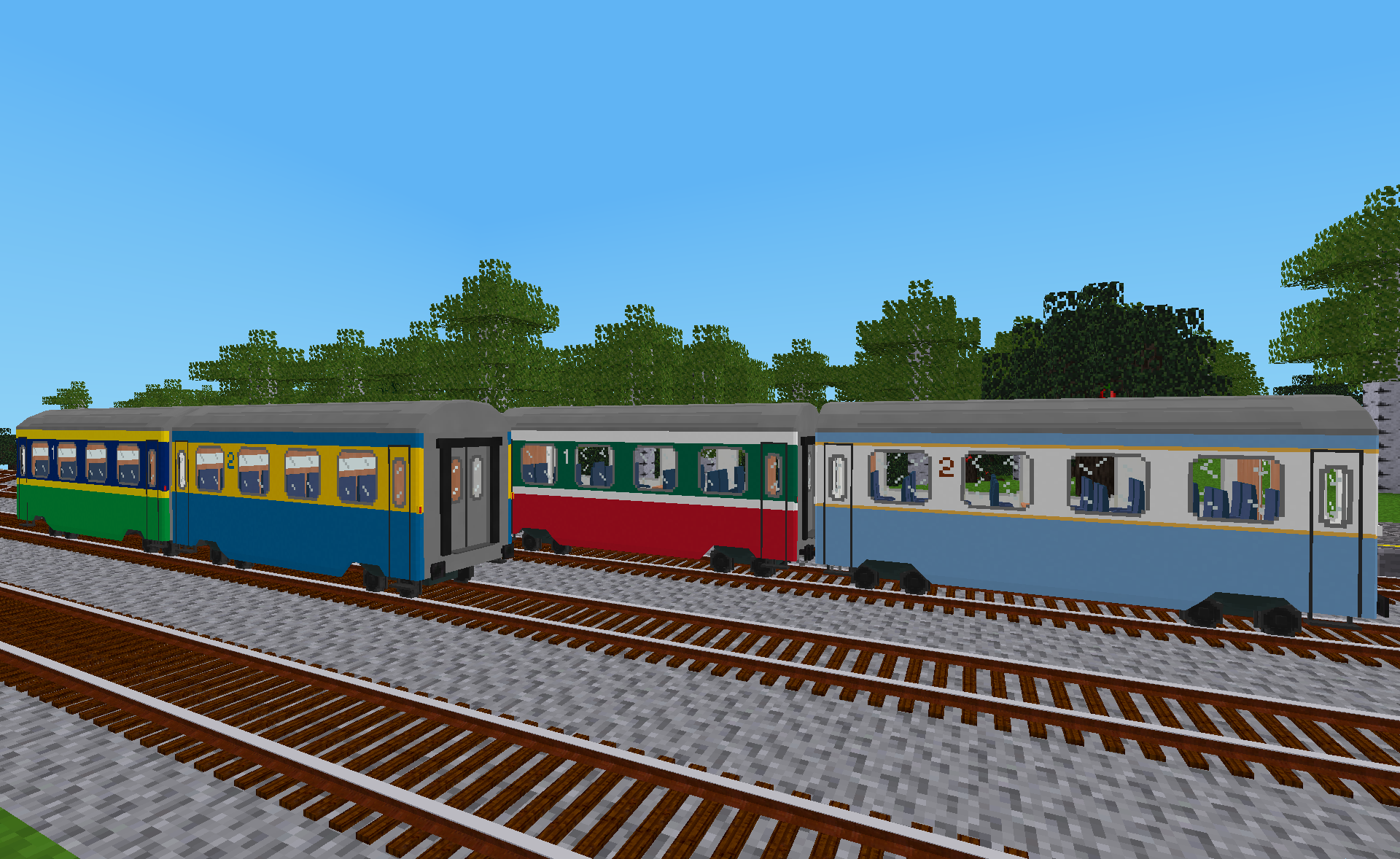 The predefined liveries in this mod are based on livery templates from the Classic Coaches Generic Livery Pack and can be applied to wagons from the Classic Coaches mod using the livery designer tool from the AdvTrains Livery Tools modpack.