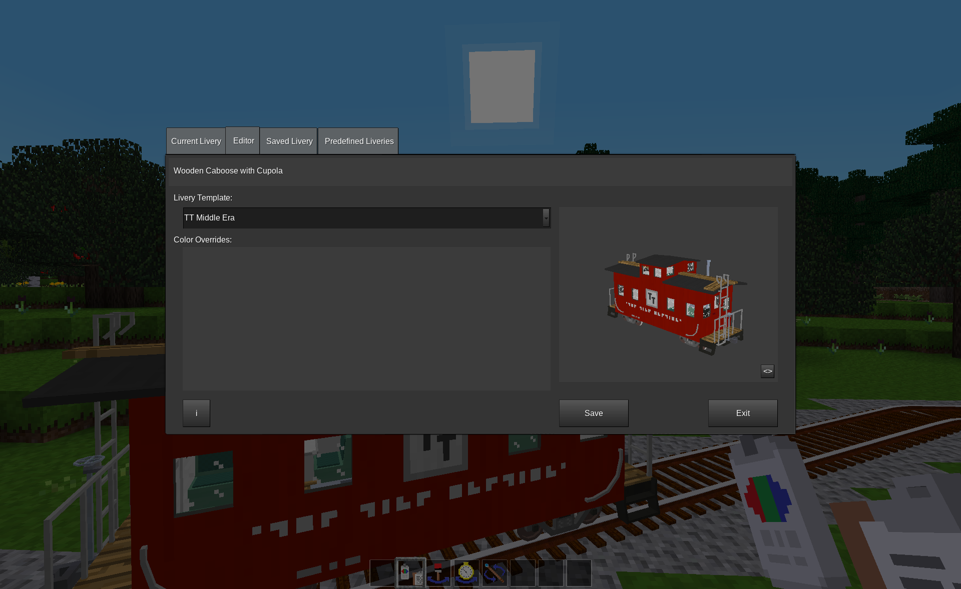 - DlxTrains Support Wagons - This mod provides support wagons, including an escort wagon and a caboose, both of which provide additional seating for train crew members. These wagons also feature selectable liveries.