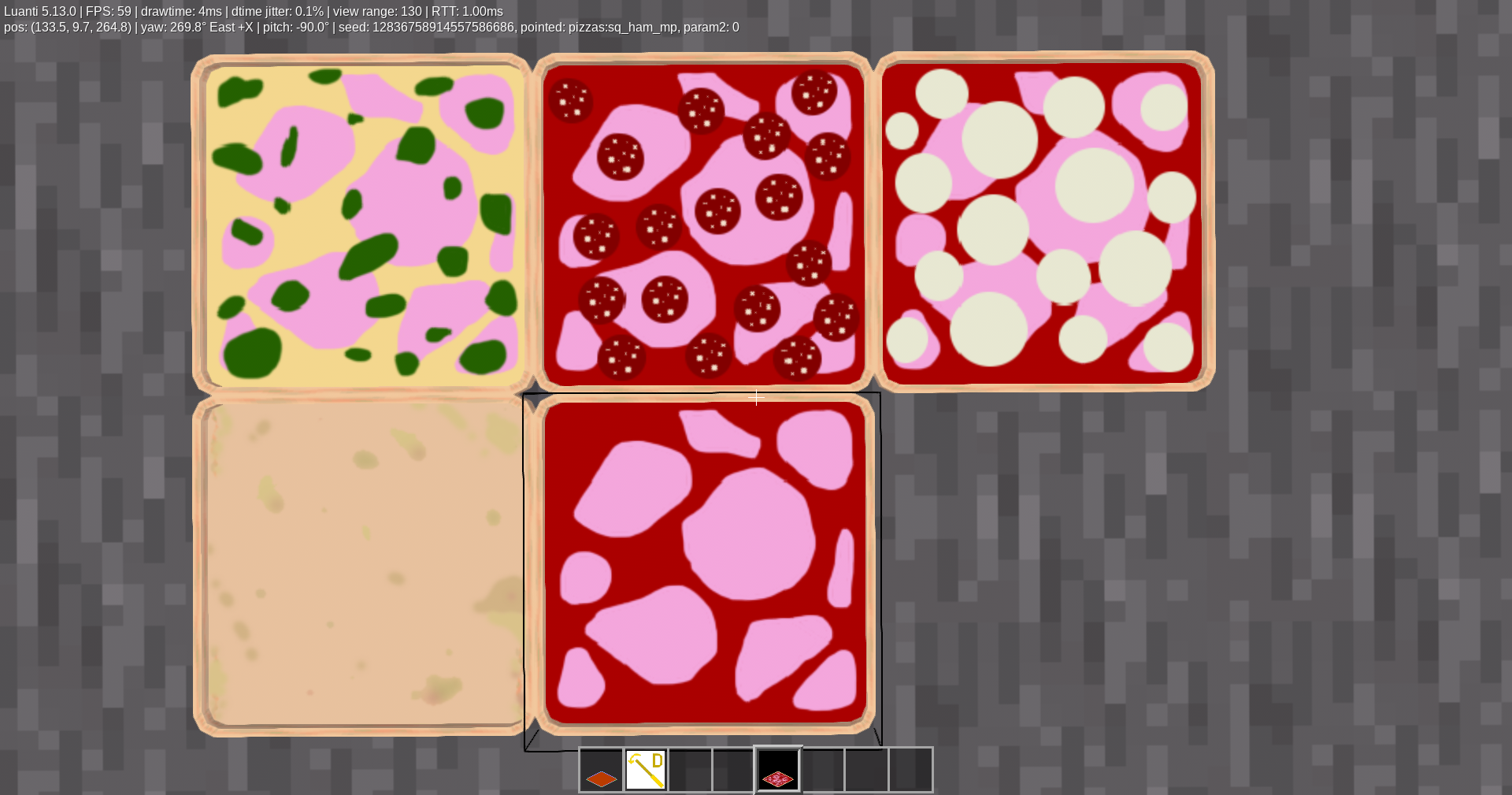 Adds some pizzas and cakes to mod https://content.luanti.ru/packages/MatyasP/pizzas_sq/.