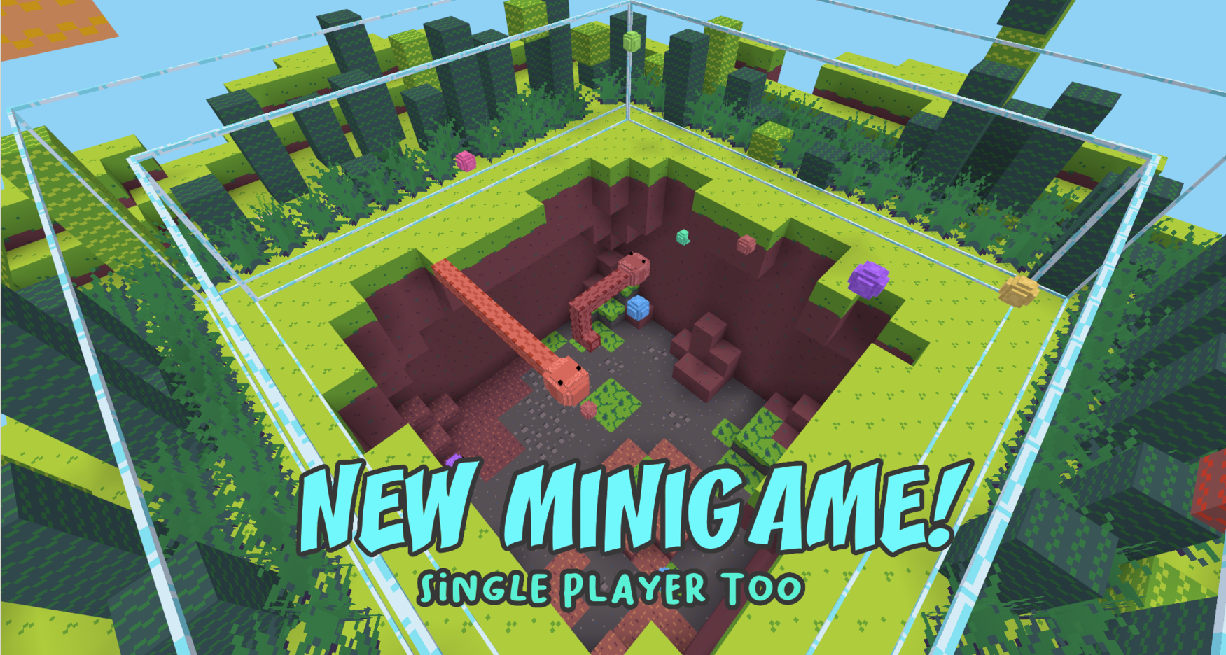 An easy-to-play 3d single or multiplayer snake minigame, with singleplayer highscores and multiplayer elimination rounds. 3rd person is suggested but not necassary for playability.