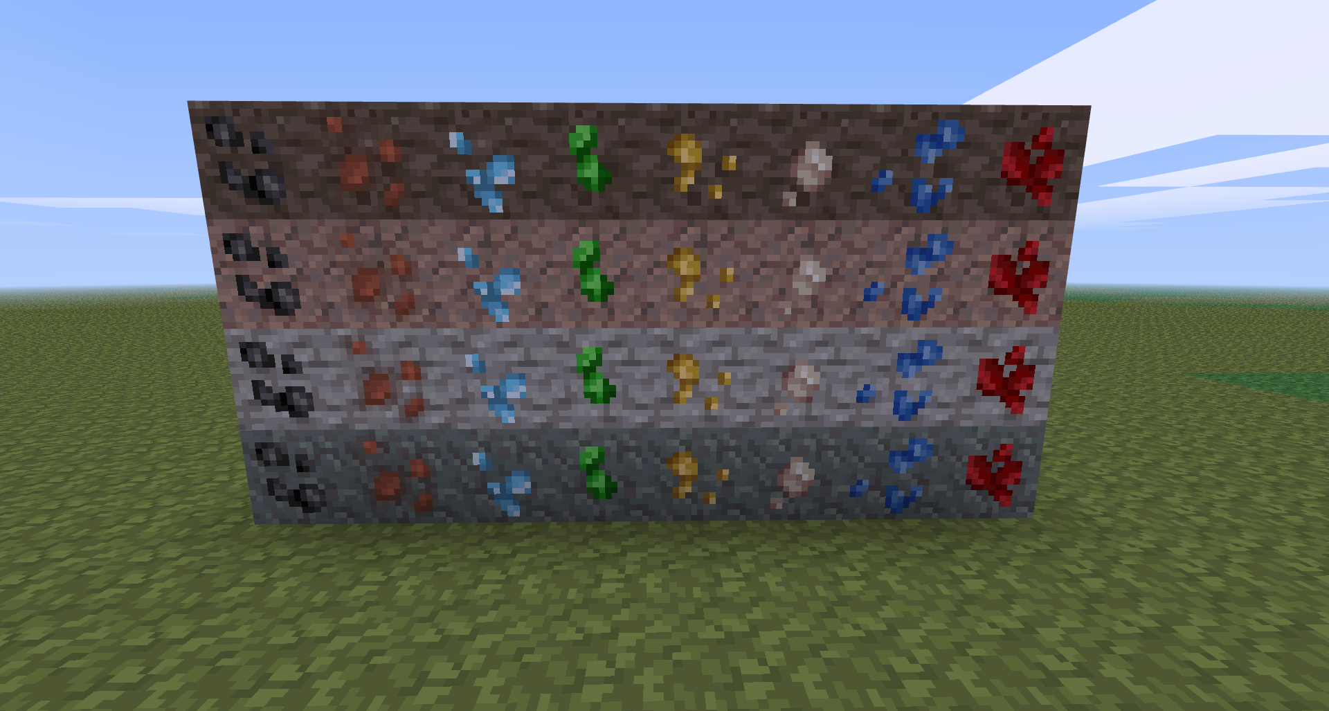 MineClone2 More Ore Variants 🔗 by NO11 🔗 Idea by Zhe Leader of Novvelia. 🔗 Make ores in stone like andesite or diorite look better. All new ores can be mined with wooden pick.